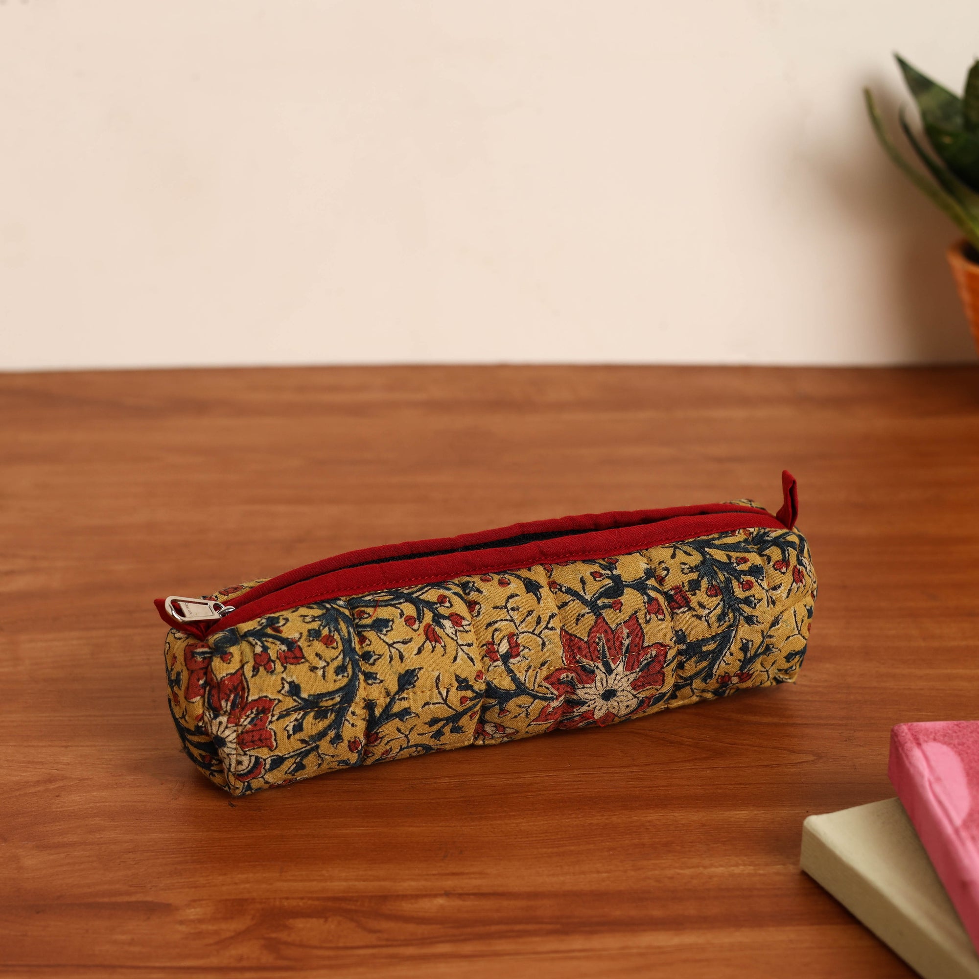 Introducing our premium yellow handcrafted quilted cotton pencil pouch. Designed for both style and durability, it keeps your essentials safe and secure. Whether you are a student, an artist, or a busy professional, its versatile design offers a stylish and practical way to store pens, pencils, and small accessories, elevating your daily workflow with a touch of artisanal excellence.