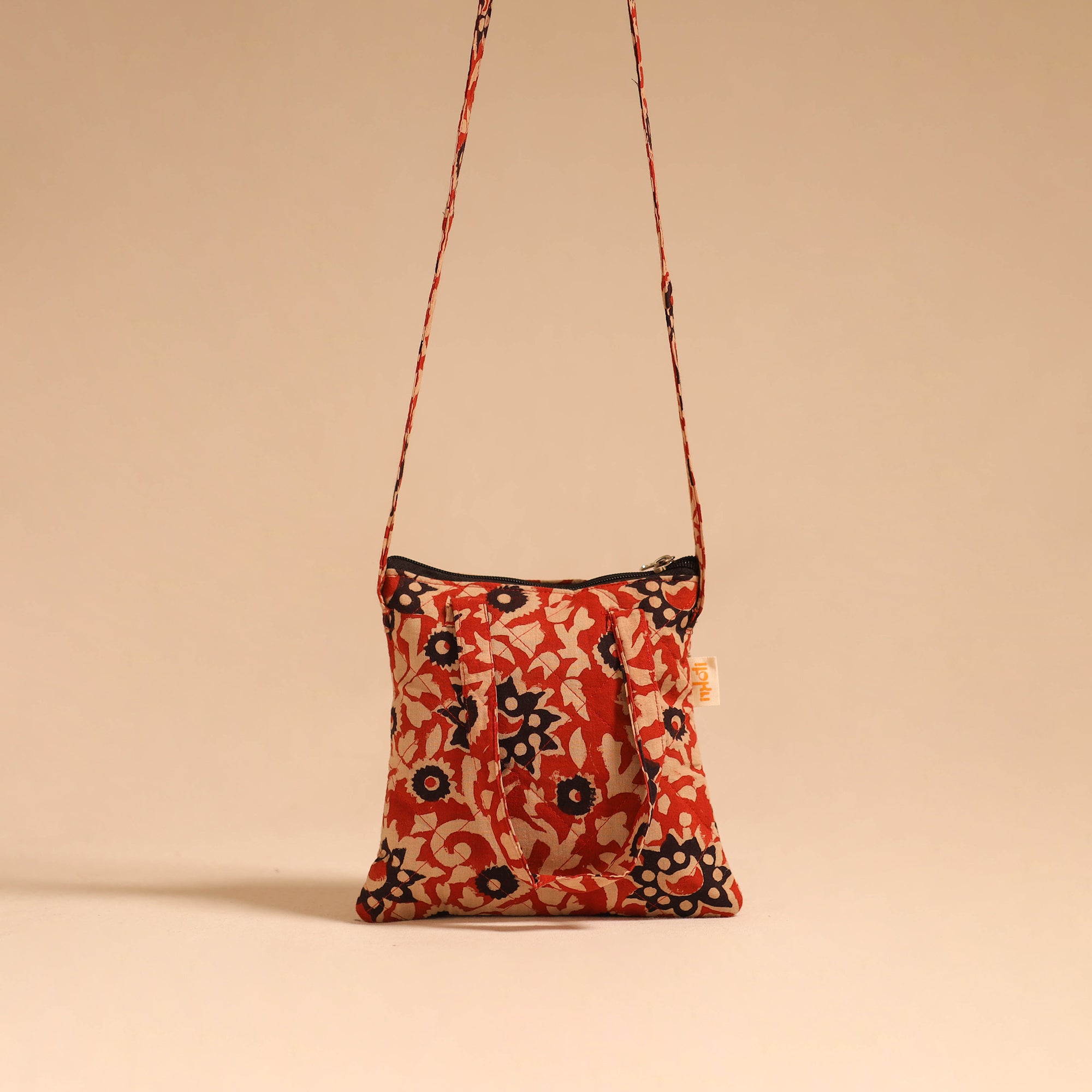 Make every outing stylish with this red cotton sling bag. Enhanced with quilted layers for safety, it has four pockets for carrying your everyday needs. Comfortable to use for regular activities, trips, or casual occasions, the bag showcases a blend of utility and traditional artistry perfected by skilled hands.
