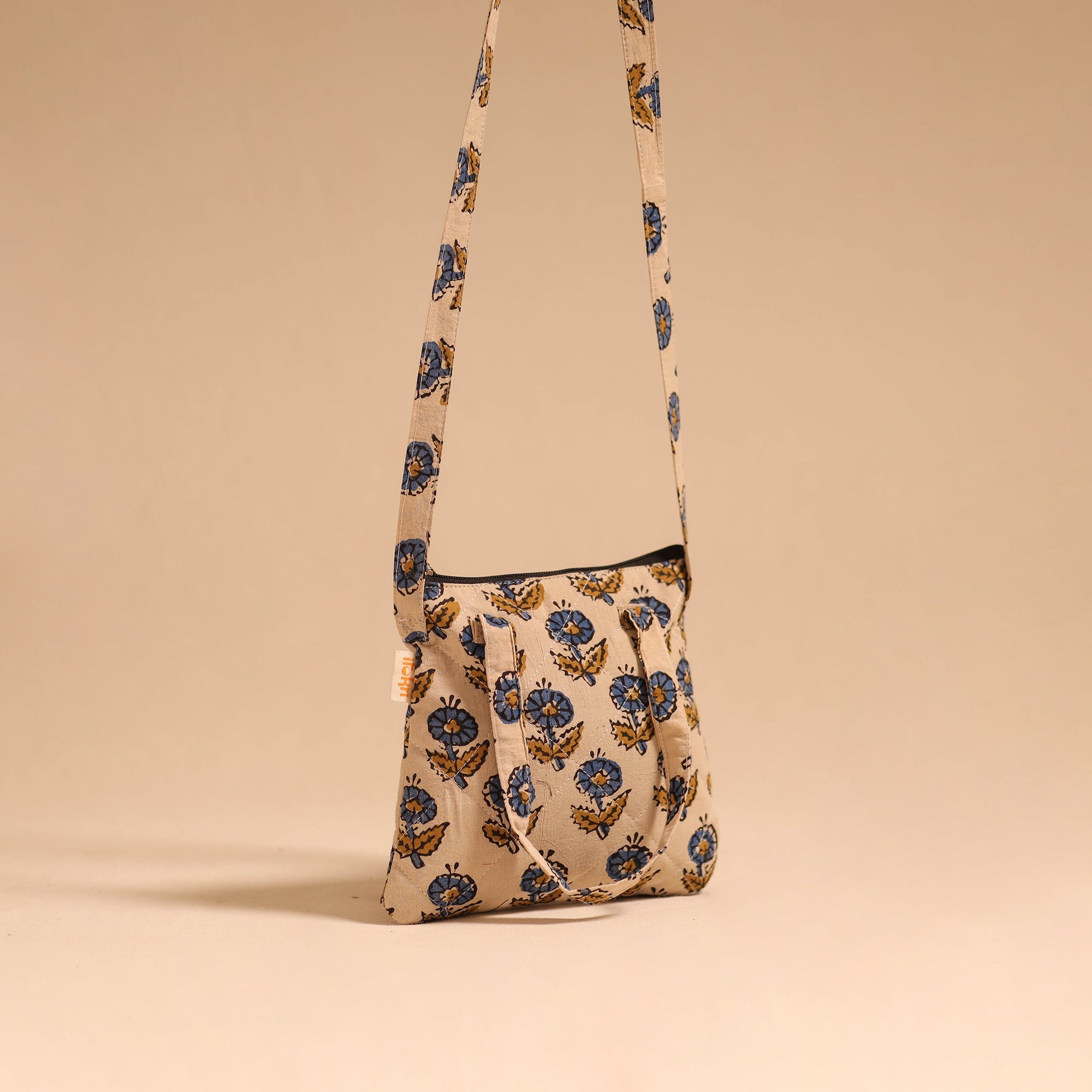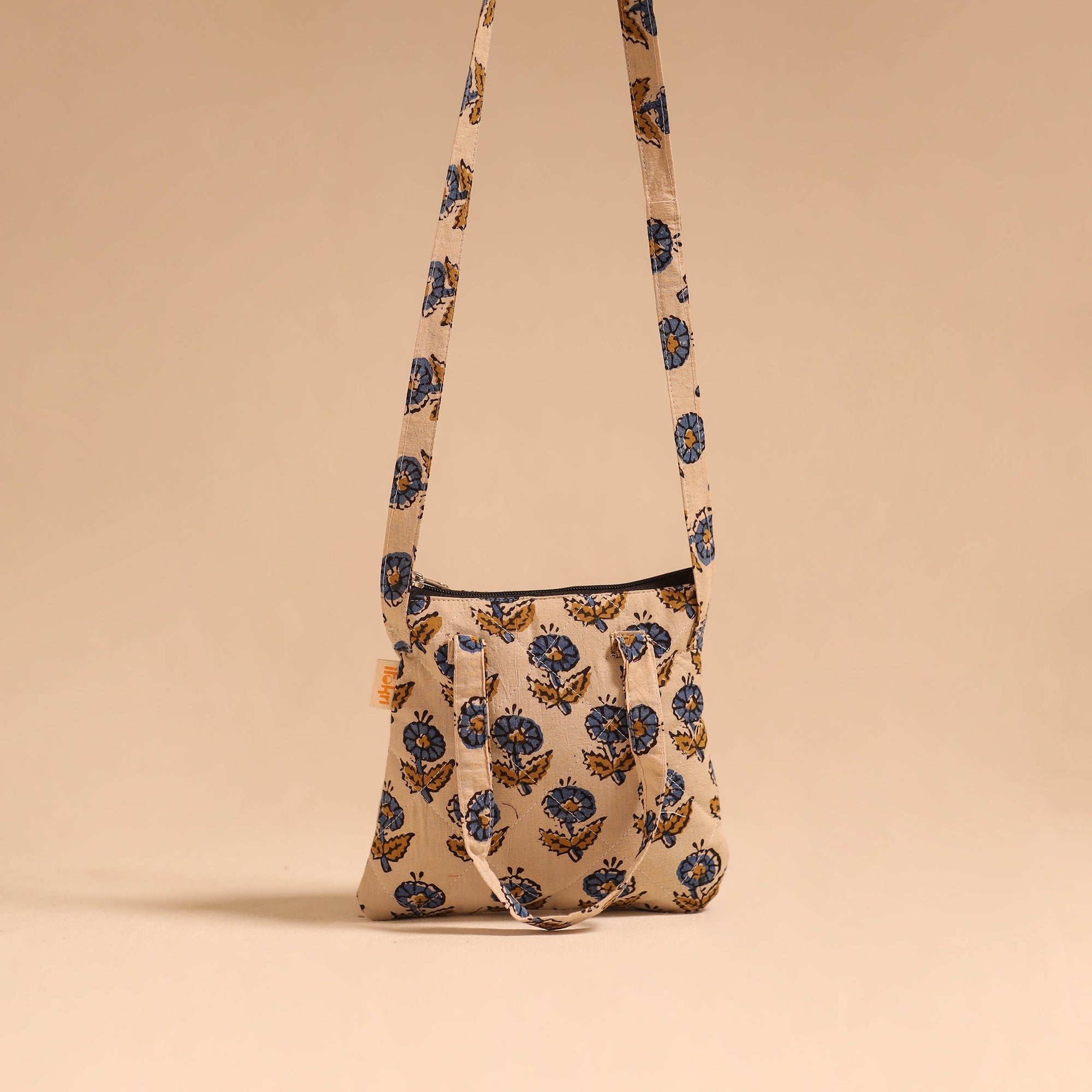 | Material | Make every outing stylish with this beige cotton sling bag. Enhanced with quilted layers for safety, it has four pockets for carrying your everyday needs. Comfortable to use for regular activities, trips, or casual occasions, the bag showcases a blend of utility and traditional artistry perfected by skilled hands. |