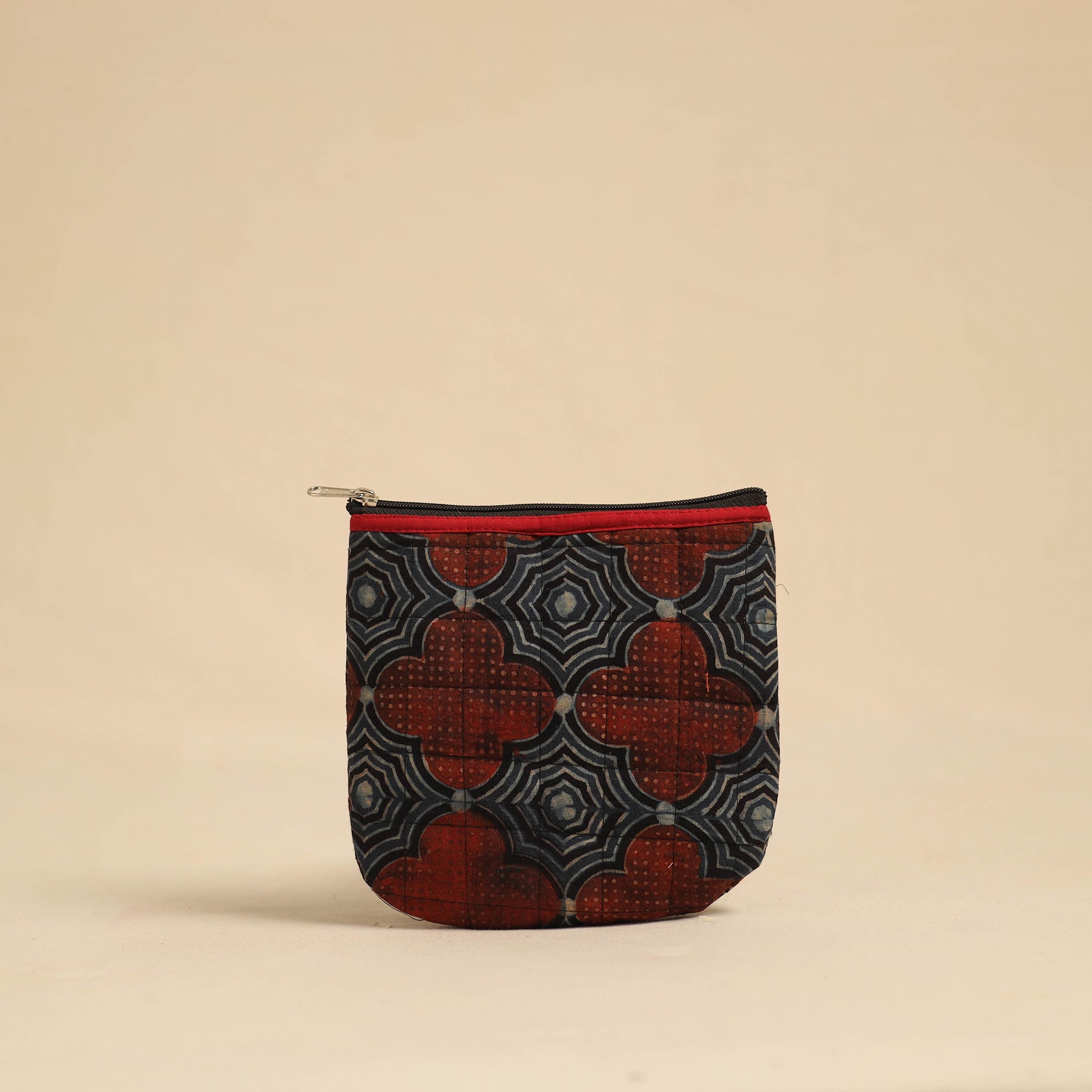 This blue handmade quilted cotton utility pouch. This quilted design not only adds charm but also enhances durability, making it perfect for daily use. This utility pouch with a zip-lock main closure, providing ample space for your essentials. The foam layer lining ensures durability and protection.