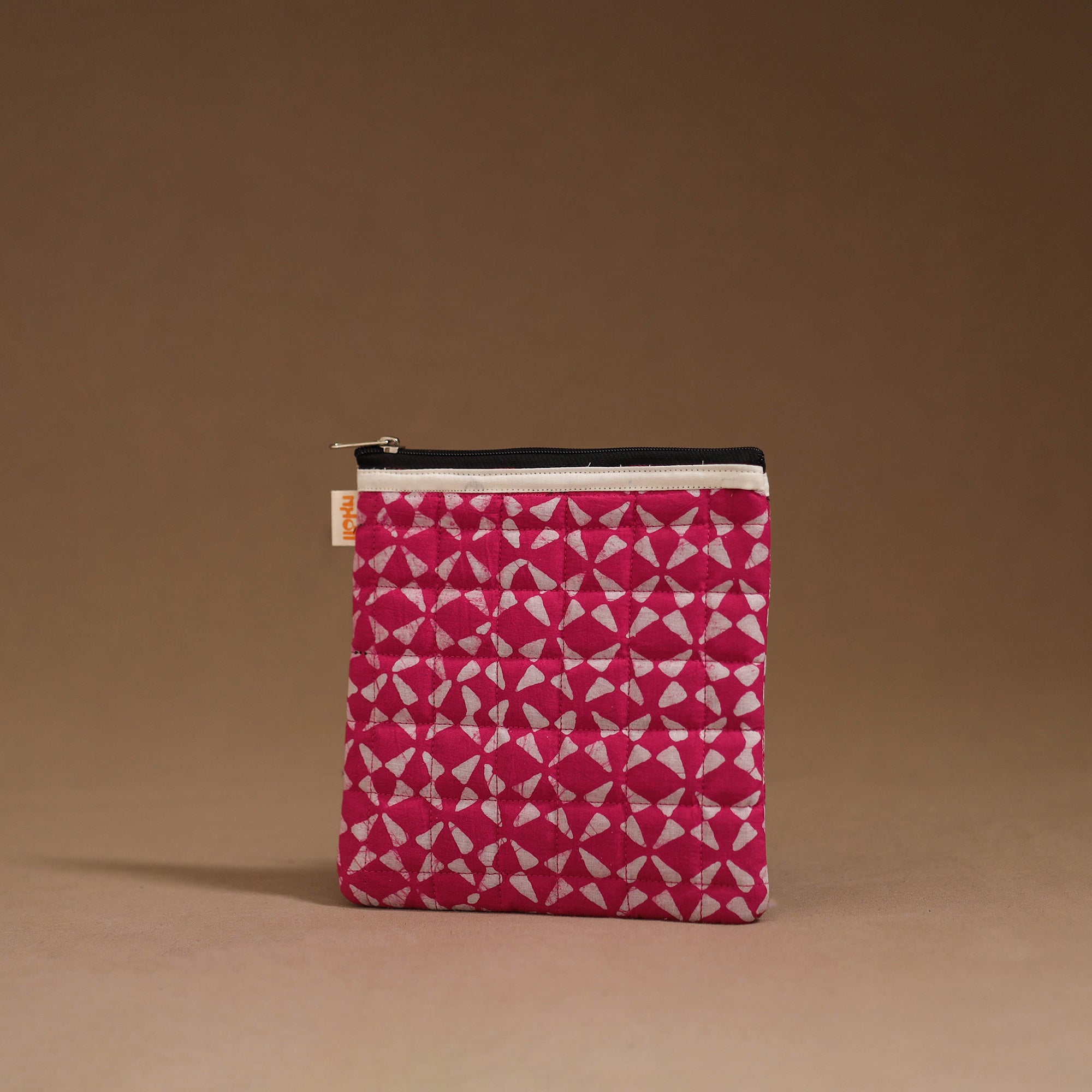 Quilted utility pouch is made using indian handmade cotton textiles. It features a zip-lock main closure with ample space for essentials, while the foam lining adds durability and protection, making it perfect for travel and everyday organization needs.