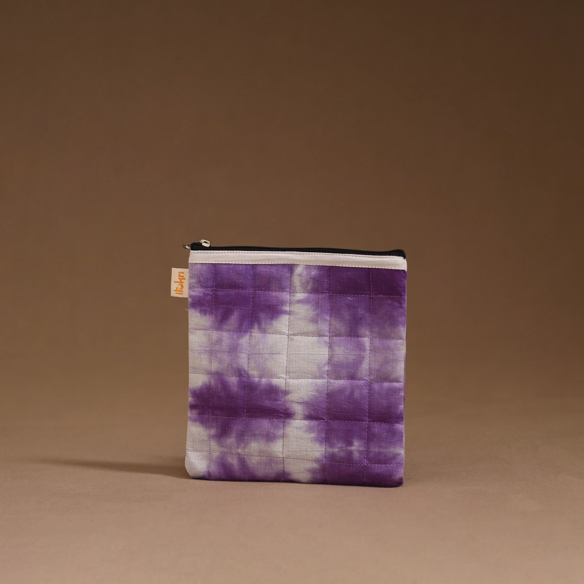 Quilted utility pouch is made using indian handmade cotton textiles. It features a zip-lock main closure with ample space for essentials, while the foam lining adds durability and protection, making it perfect for travel and everyday organization needs.