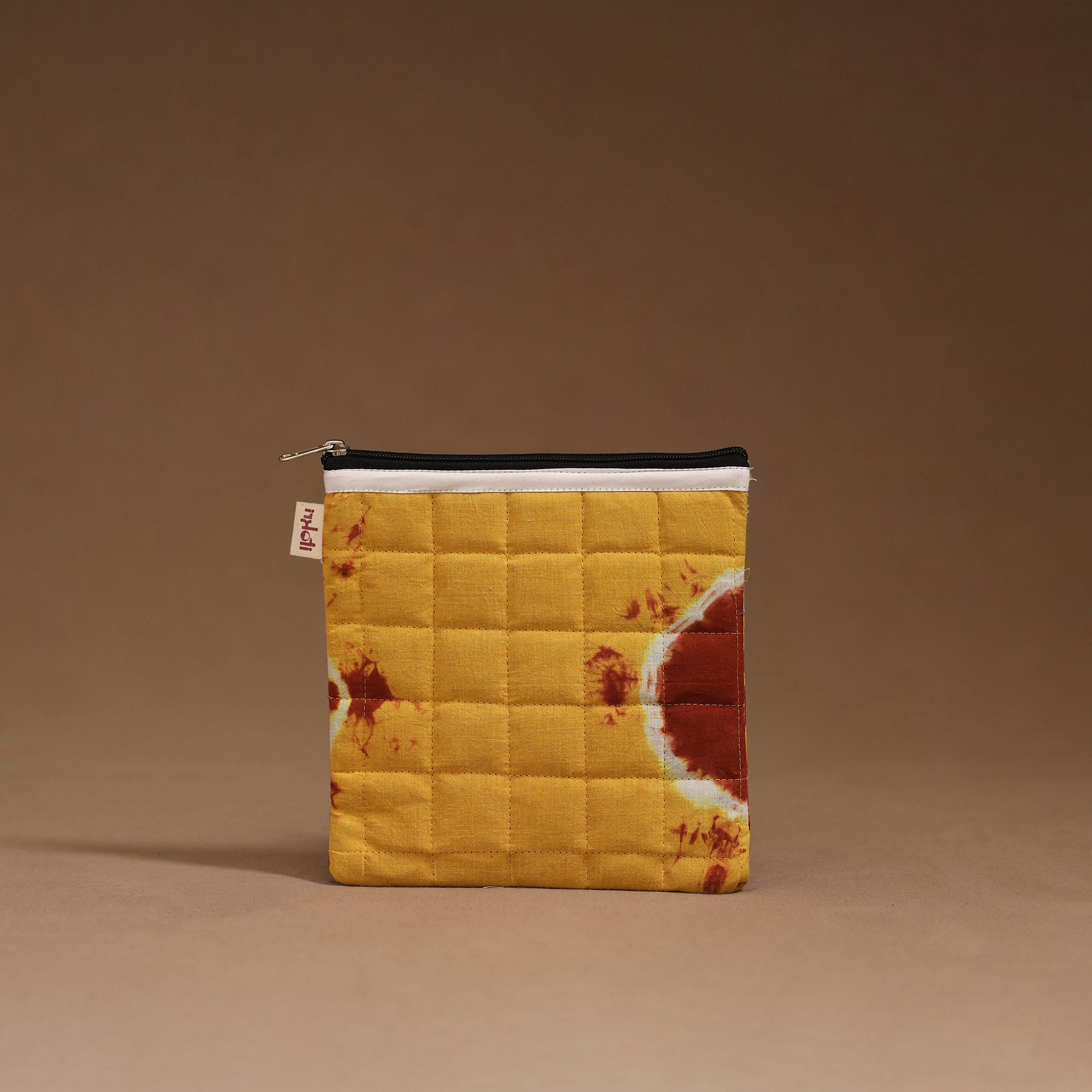 | Material | Yellow quilted utility pouch is made using indian handmade cotton textiles. It features a zip-lock main closure with ample space for essentials, while the foam lining adds durability and protection, making it perfect for travel and everyday organization needs. |