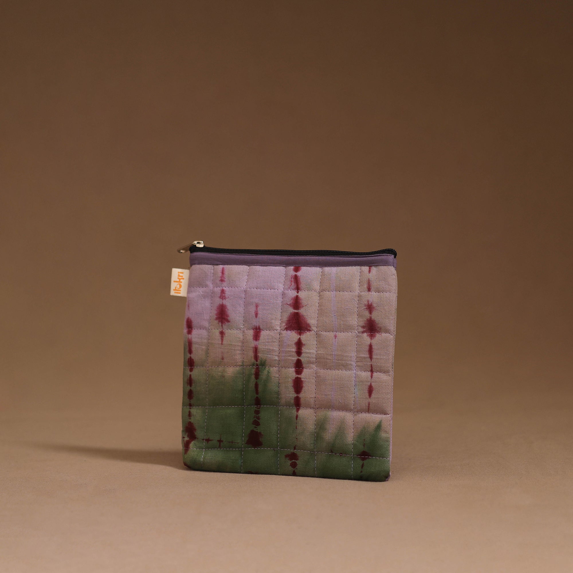 Quilted utility pouch is made using indian handmade cotton textiles. It features a zip-lock main closure with ample space for essentials, while the foam lining adds durability and protection, making it perfect for travel and everyday organization needs.