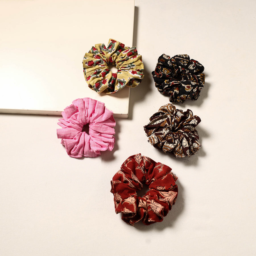 Handmade multicolor rubber band/scrunchie set is perfect for everyday use. Made from soft cotton fabric, each piece holds your hair gently without pulling or damage. Ideal for ponytails, braids, or buns, they add a simple, stylish touch to your look. Comes as a set of 5 in beautiful colours.