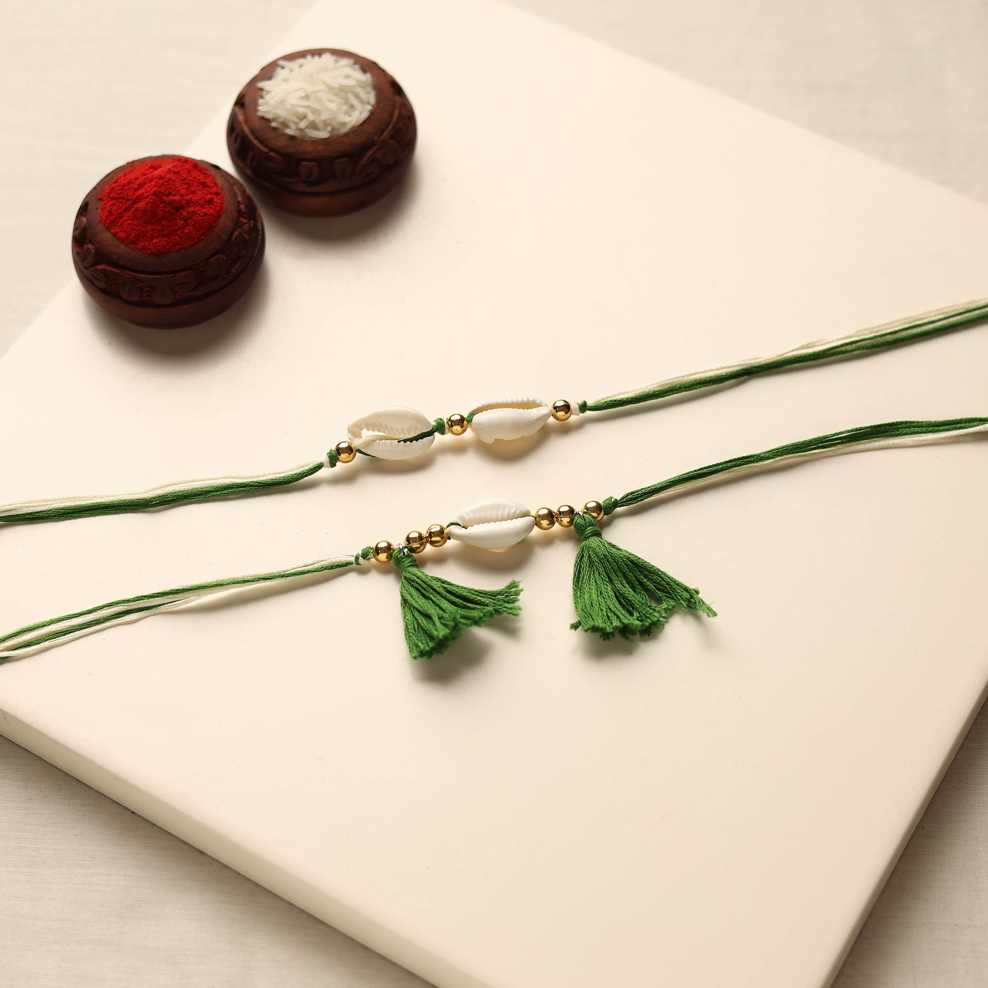 •  Handmade Shell & Bead Work Rakhi & Lumba Set