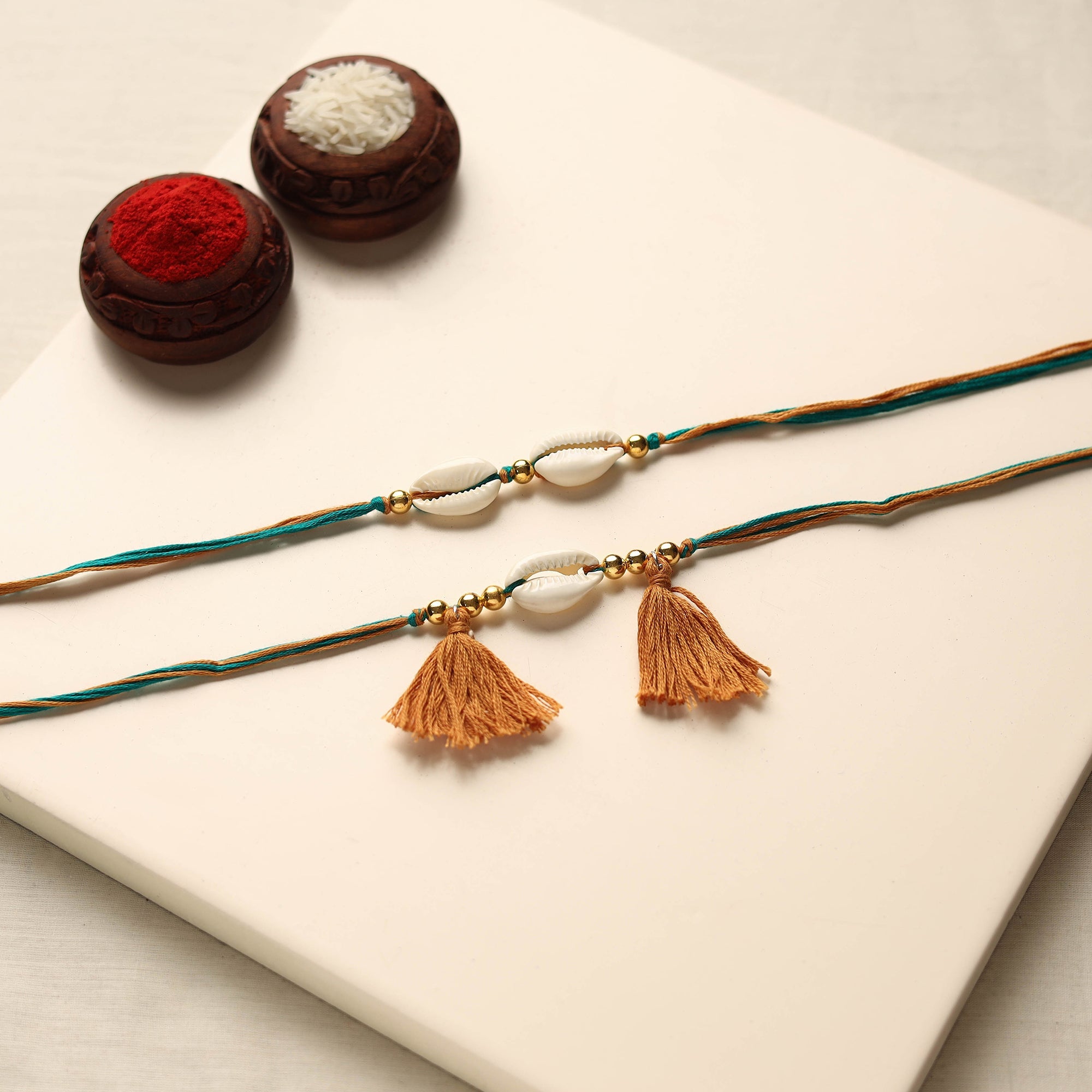 Make this raksha bandhan memorable with a handmade rakhi and lumba set, crafted using shells and beads. Each piece reflects the love and tradition shared between siblings. Made by iTokri’s artisans, this set is a thoughtful choice for your brother and bhabhi. It comes packed in a beautiful potli, perfectly ready for gifting.