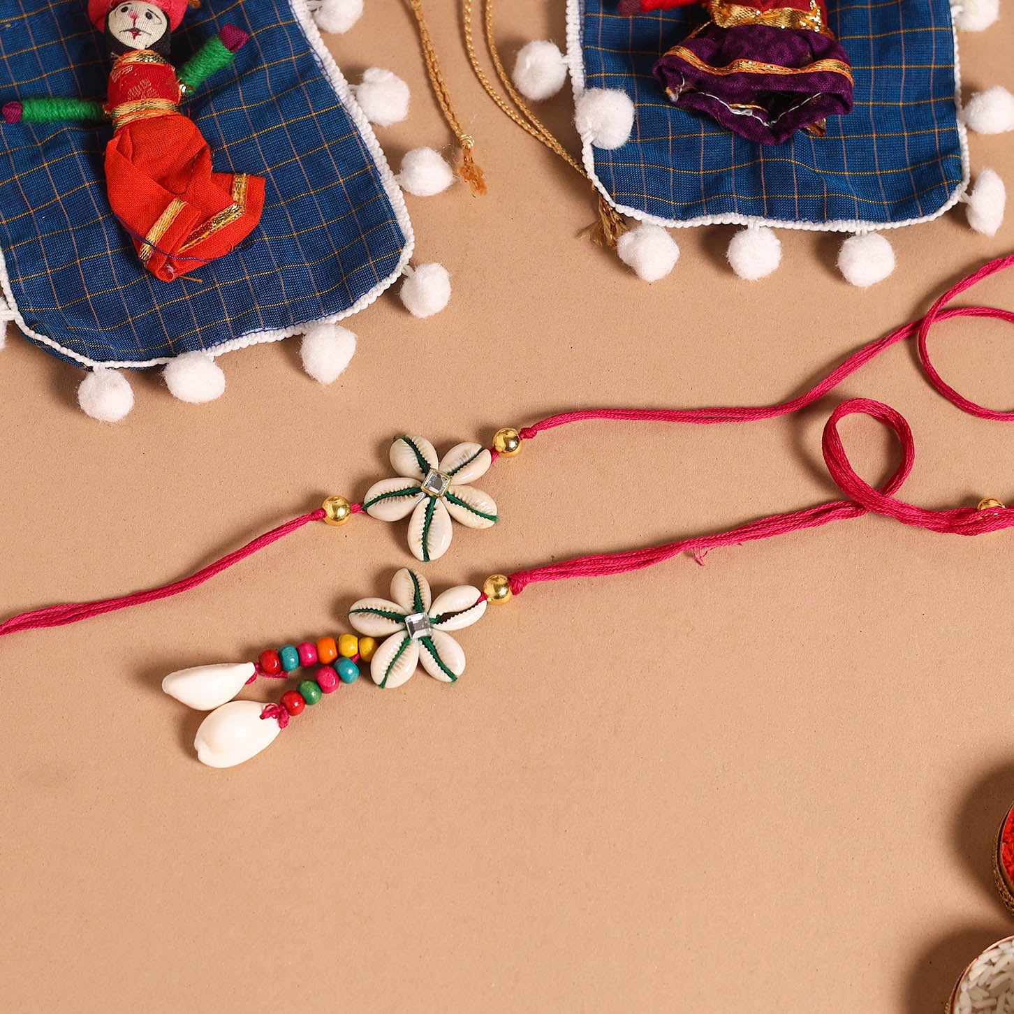 •  Handmade Shell & Bead Work Rakhi & Lumba Set