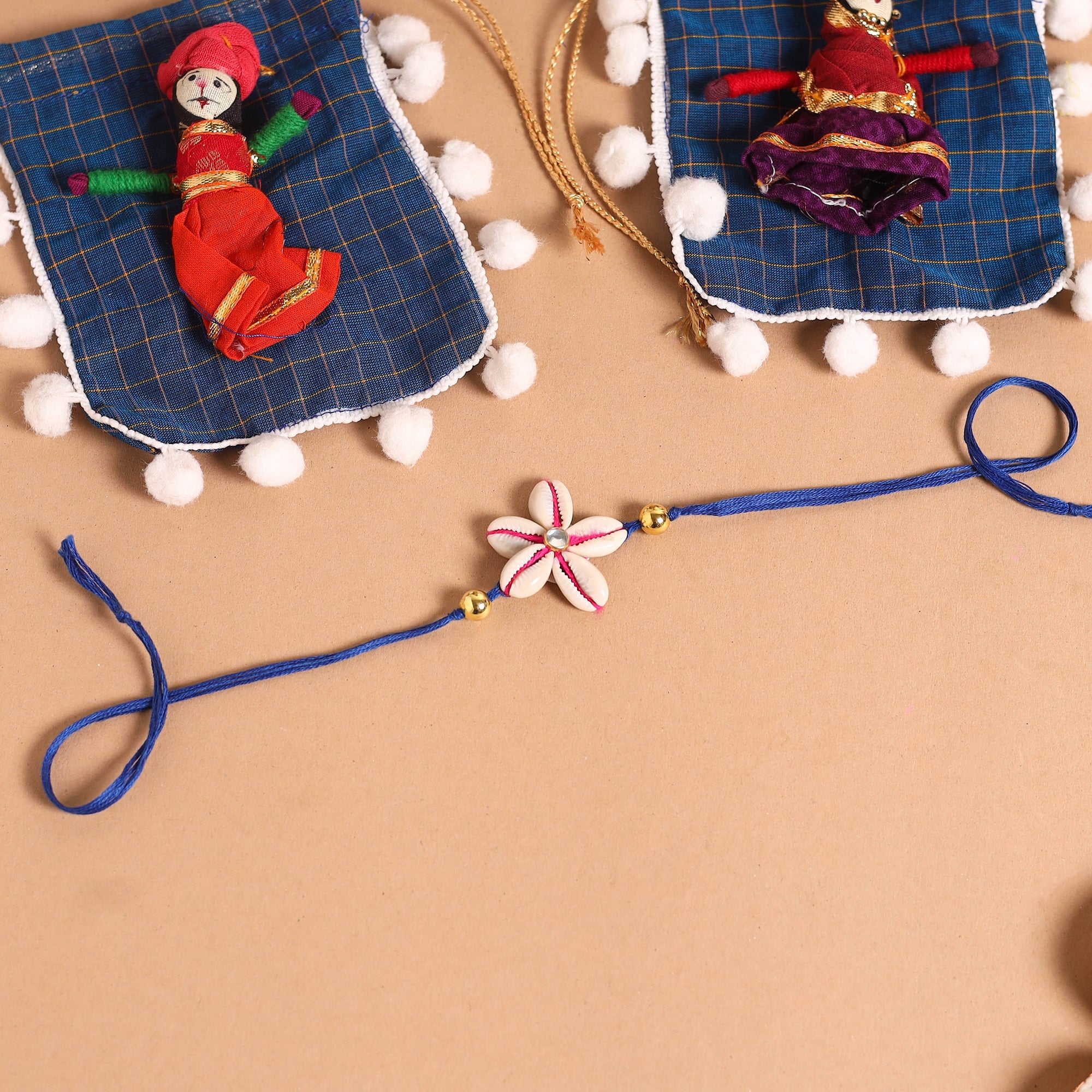 Celebrate the bond of love and tradition with this handmade shell and bead work rakhi and lumba set. Crafted with vibrant colors and intricate patterns, this set beautifully symbolizes care, affection, and festive spirit. Perfect for Raksha Bandhan, it’s a meaningful way to express love. Includes a potli for gifting.