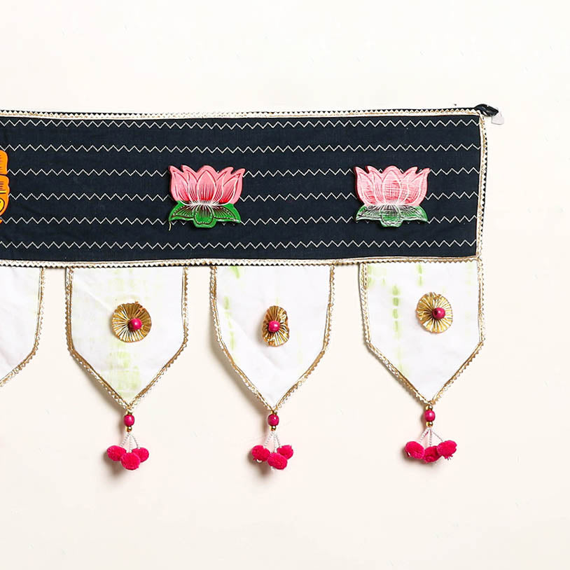 Celebrate tradition with this handcrafted toran, made from fabric and adorned with shells and gota patti. This piece is uniquely crafted by skilled artisans, making every toran a one-of-a-kind festive accent. Designed for doors and entryways, it brings a joyful and welcoming vibe to your home. Whether for everyday décor or special occasions, this toran beautifully blends vibrant charm with Indian artistry.