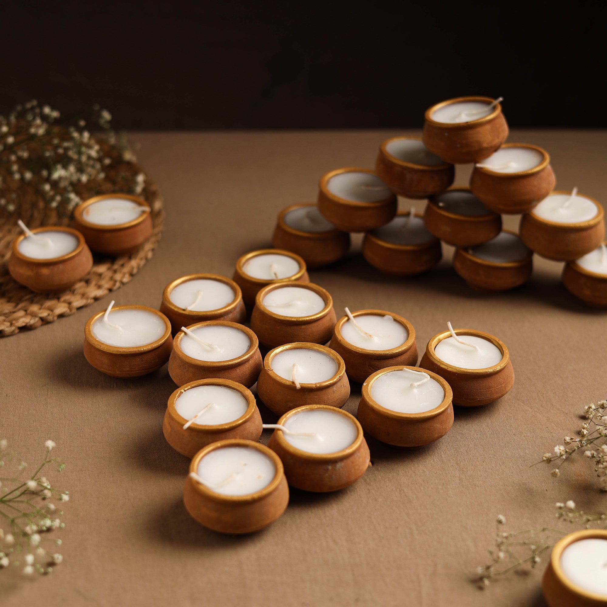Illuminate your space with our handmade terracotta handi candles (set of 25). Made from natural clay, these candles radiate a warm, earthy charm, ideal for home decor or thoughtful gifting. Each candle burns for a long time, offering a sustainable lighting option.