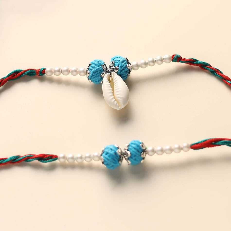 Celebrate the bond of siblings love with our handmade gs, thread and beadwork rakhi and lumba set. Crafted by skilled artisans, this rakhi is more than just a thread, it's a heartfelt symbol of affection and tradition. Perfect for making your Raksha Bandhan celebration truly special, it comes beautifully packed in a potli.