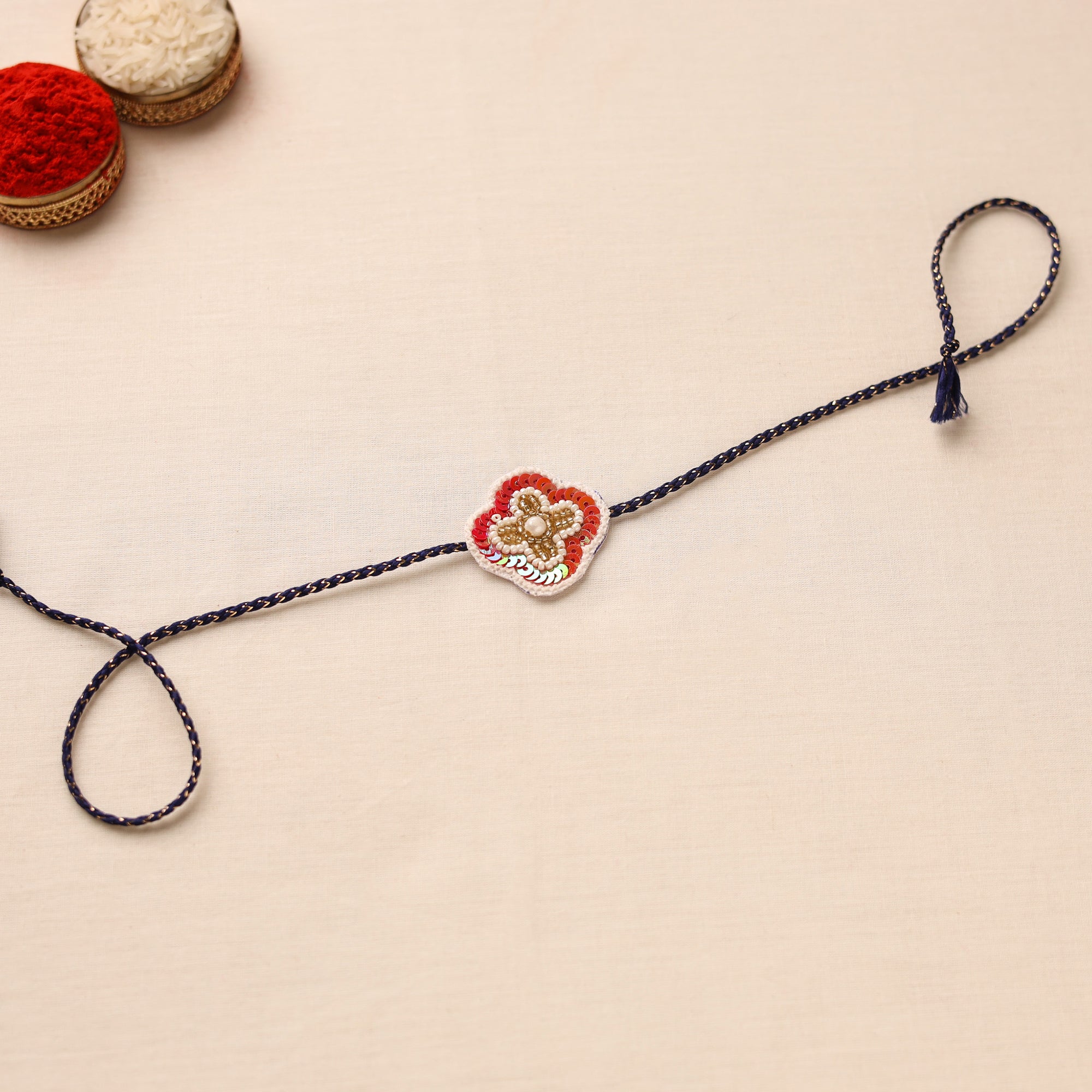 Colorful glass beads & thread work rakhi handcrafted for the very special khatta meetha bond between brother and sister. This Rakhi will come with a potli for added charm. Bursting with vibrant colours and crafted with love, this unique piece symbolizes the joyous connection between a brother and sister.