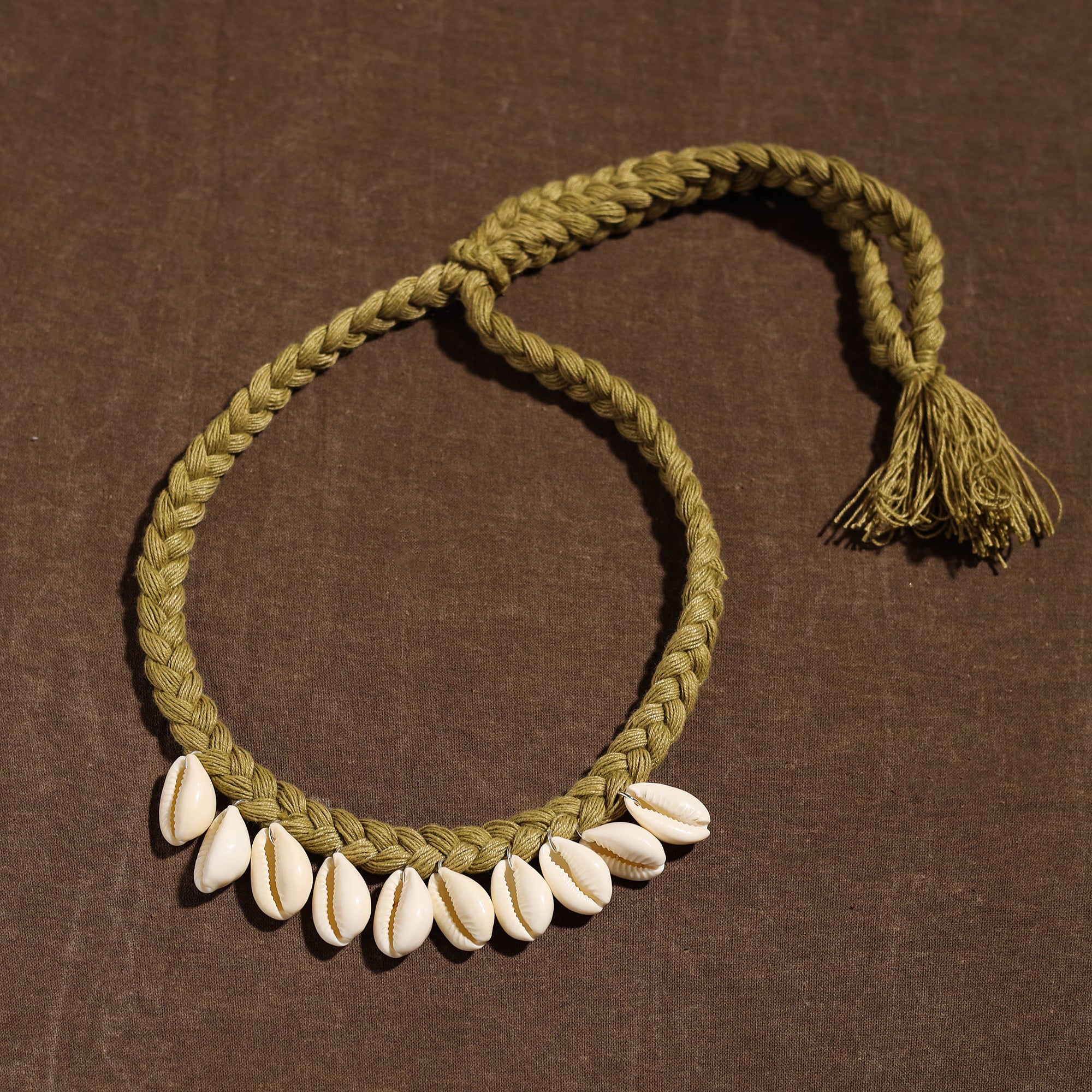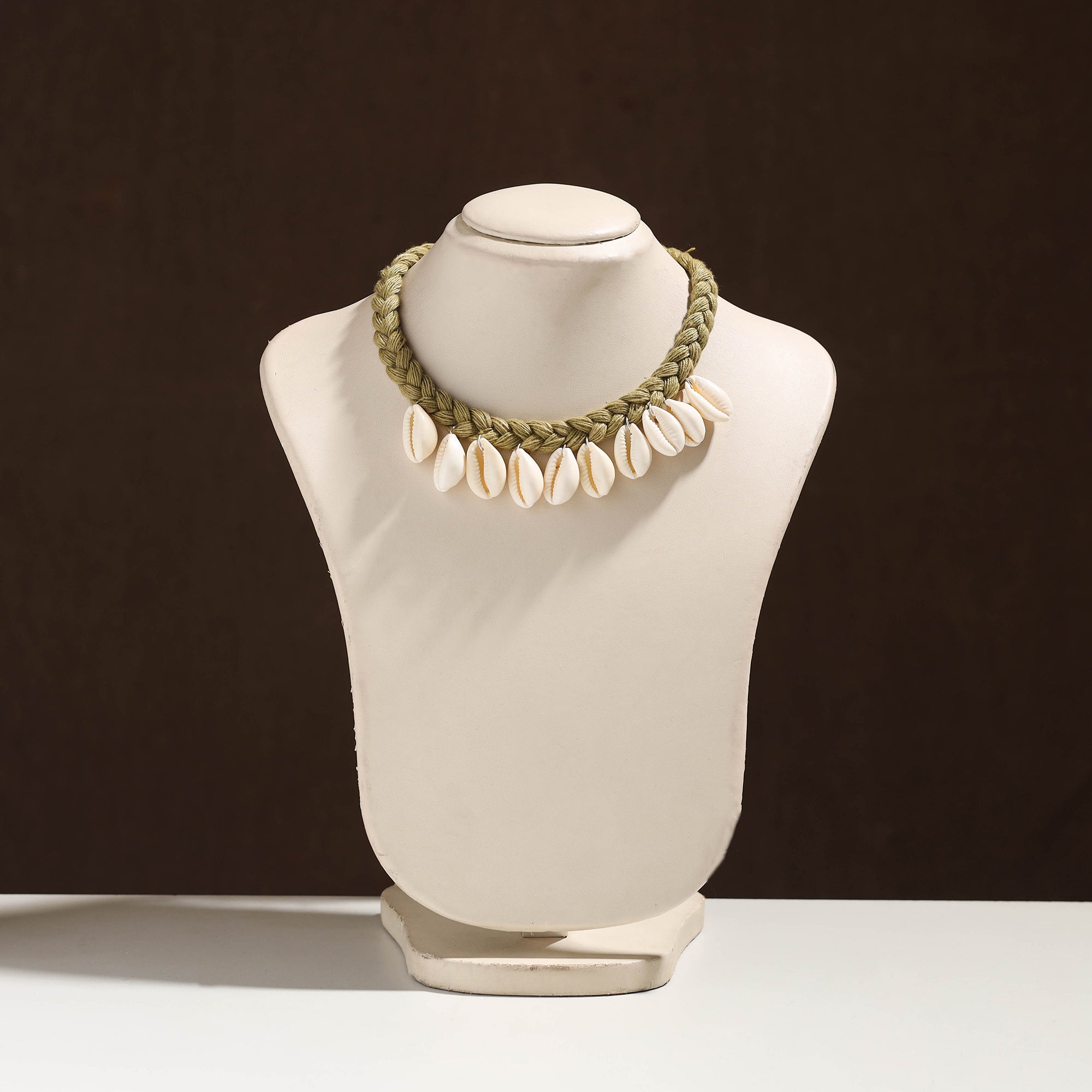 Embrace the elegance of artisanal design with this green handmade thread-braided shell necklace. Crafted by skilled artisans, this necklace seamlessly blends tradition with contemporary elegance. Featuring intricately braided thread and adorned with delicate shells, it adds a unique and artistic charm to any ensemble, making it a perfect addition to your wardrobe.