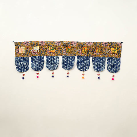 Welcome your guests with a touch of tradition! This handmade toran for door decoration. Adorned with intricate gota patti, pom pom, and shell work. Torans have been used in Indian decor for centuries, symbolizing auspiciousness. This toran is crafted with care, adding charm and elegance to any space.