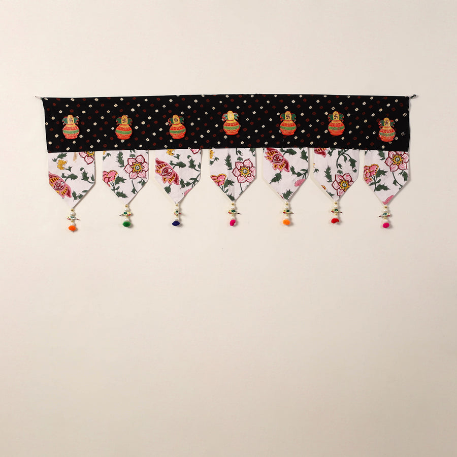 Welcome your guests with a touch of tradition! This handmade toran for door decoration. Adorned with intricate gota patti, pom pom, and shell work. Torans have been used in Indian decor for centuries, symbolizing auspiciousness. This toran is crafted with care, adding charm and elegance to any space.