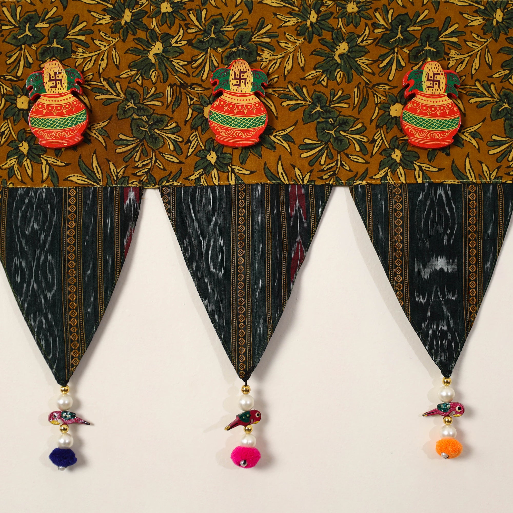 The origins of toran can be traced back to Purana (a work of Hindu mythology). Torans are used to decorate the main entrance to a dwelling. The main idea behind decorating the house is to please and attract the goddess of wealth Lakshmi. This toran is the first to greet guests.