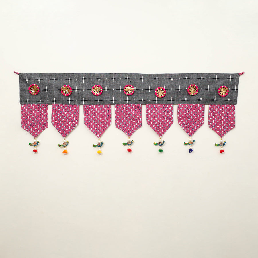 Welcome your guests with a touch of tradition! This handmade toran for door decoration. Adorned with intricate gota patti, pom pom, and shell work. Torans have been used in Indian decor for centuries, symbolizing auspiciousness. This toran is crafted with care, adding charm and elegance to any space.