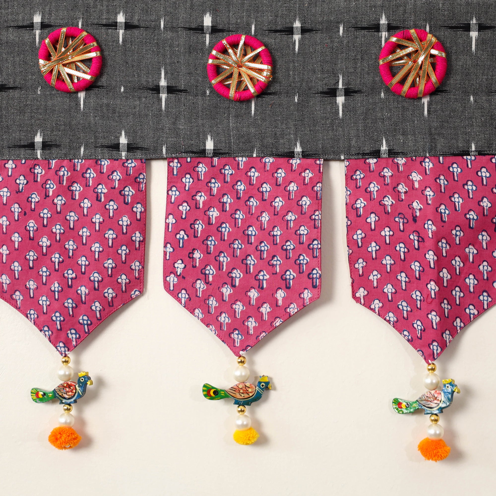 Welcome your guests with a touch of tradition! This handmade toran for door decoration. Adorned with intricate gota patti, pom pom, and shell work. Torans have been used in Indian decor for centuries, symbolizing auspiciousness. This toran is crafted with care, adding charm and elegance to any space.