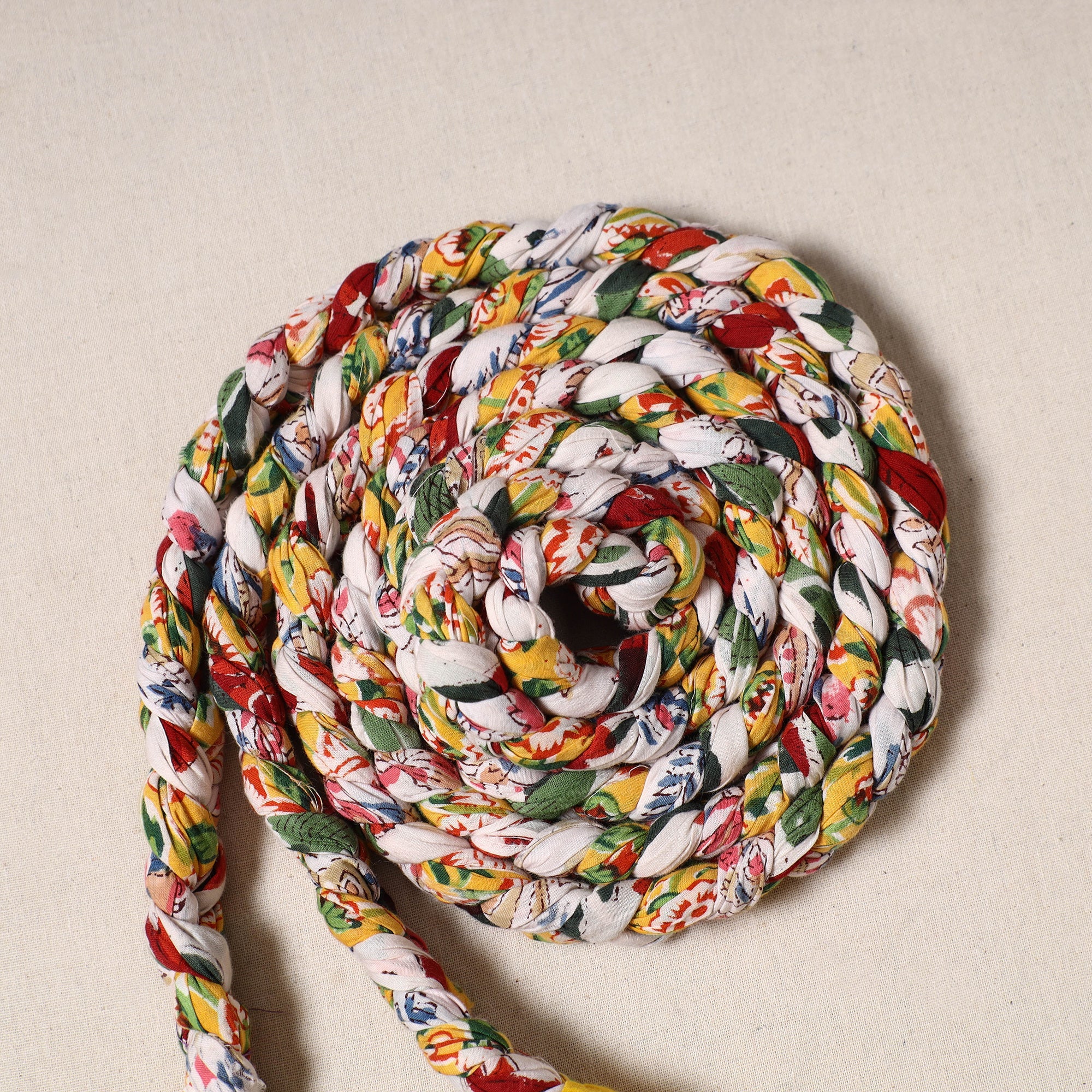Achieve your fitness goals while going green with our handmade skipping jump rope crafted from upcycled fabric. It is a healthy exercise and specially good for heart and body coordination. Its bold colors make your exercise fun. It has fabric made anti-slip handles which makes it easy to use. Build stamina, lose weight and suitable for many body fitness.