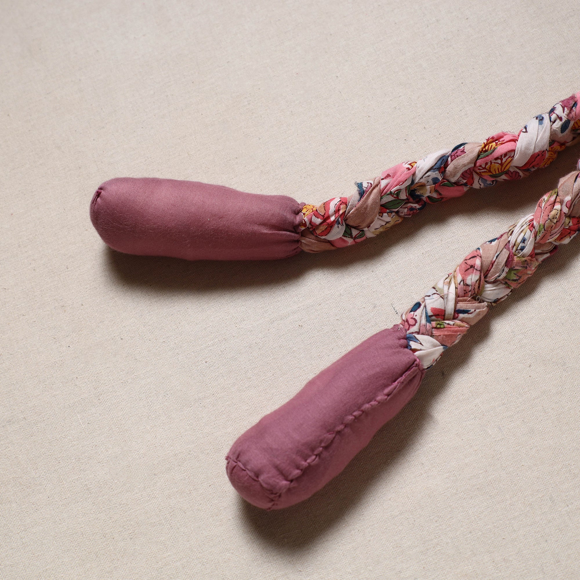 Achieve your fitness goals while going green with our handmade skipping jump rope crafted from upcycled fabric. It is a healthy exercise and specially good for heart and body coordination. Its bold colors make your exercise fun. It has fabric made anti-slip handles which makes it easy to use. Build stamina, lose weight and suitable for many body fitness.