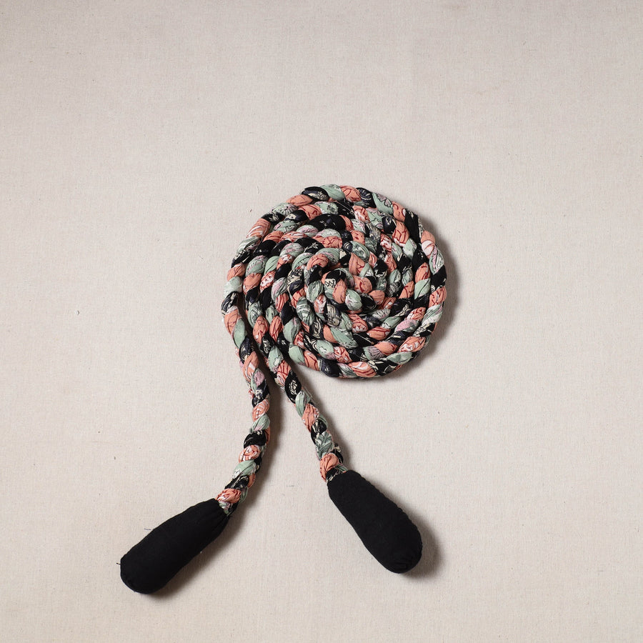 Achieve your fitness goals while going green with our handmade skipping jump rope crafted from upcycled fabric. It is a healthy exercise and specially good for heart and body coordination. Its bold colors make your exercise fun. It has fabric made anti-slip handles which makes it easy to use. Build stamina, lose weight and suitable for many body fitness.