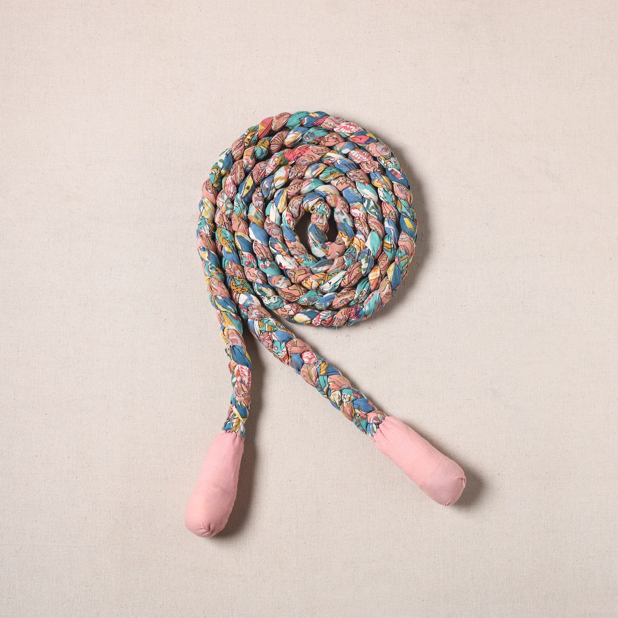 Jump into a healthier lifestyle with our handcrafted upcycled fabric skipping rope! Its hand-braided design ensures long-lasting performance, making it suitable for all fitness levels. The colorful patterns bring an element of fun to your workouts, making exercise more engaging and stylish.