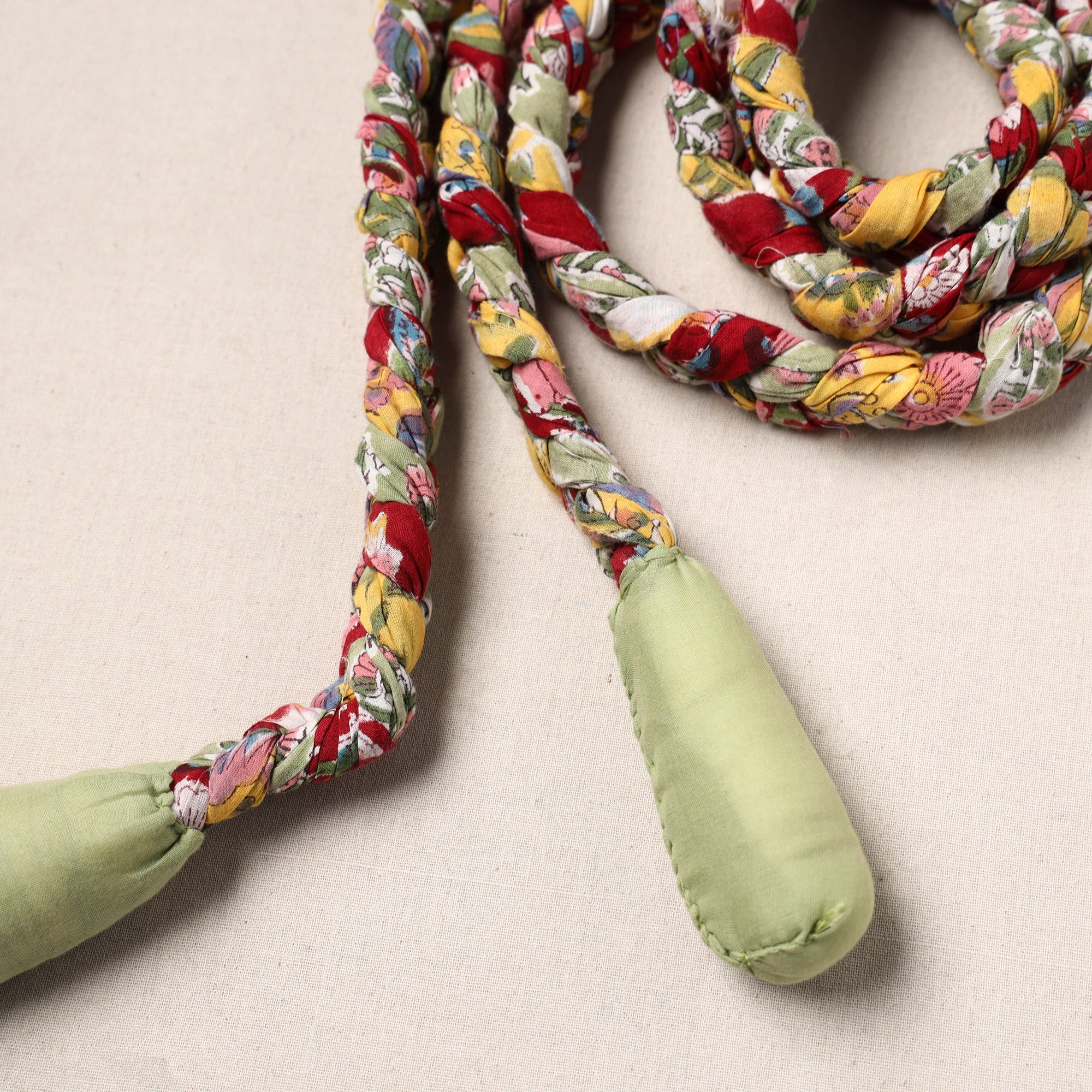 Achieve your fitness goals while going green with our handmade upcycled fabric skipping rope. It is a healthy exercise and specially good for heart and body coordination. Its bold colors make your exercise fun. It has fabric made anti-slip handles which makes it easy to use. Build stamina, lose weight and suitable for many body fitness