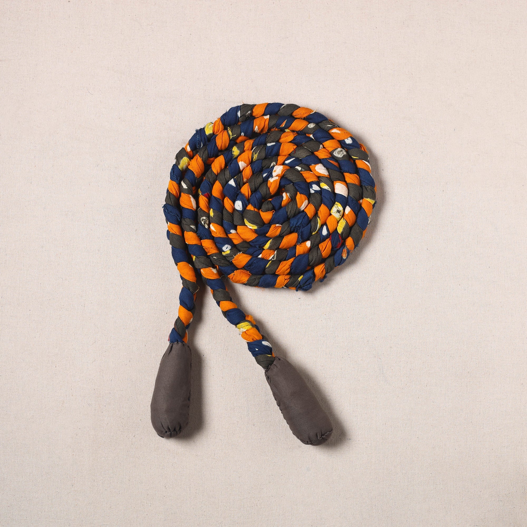 Jump into a healthier lifestyle with our handcrafted upcycled fabric skipping rope! Its hand-braided design ensures long-lasting performance, making it suitable for all fitness levels. The colorful patterns bring an element of fun to your workouts, making exercise more engaging and stylish.