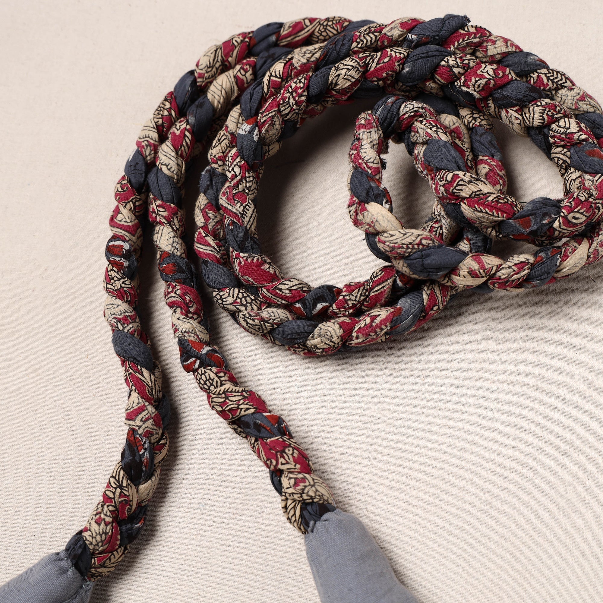 Achieve your fitness goals while going green with our handmade upcycled fabric skipping rope. It is a healthy exercise and specially good for heart and body coordination. Its bold colors make your exercise fun. It has fabric made anti-slip handles which makes it easy to use. Build stamina, lose weight and suitable for many body fitness