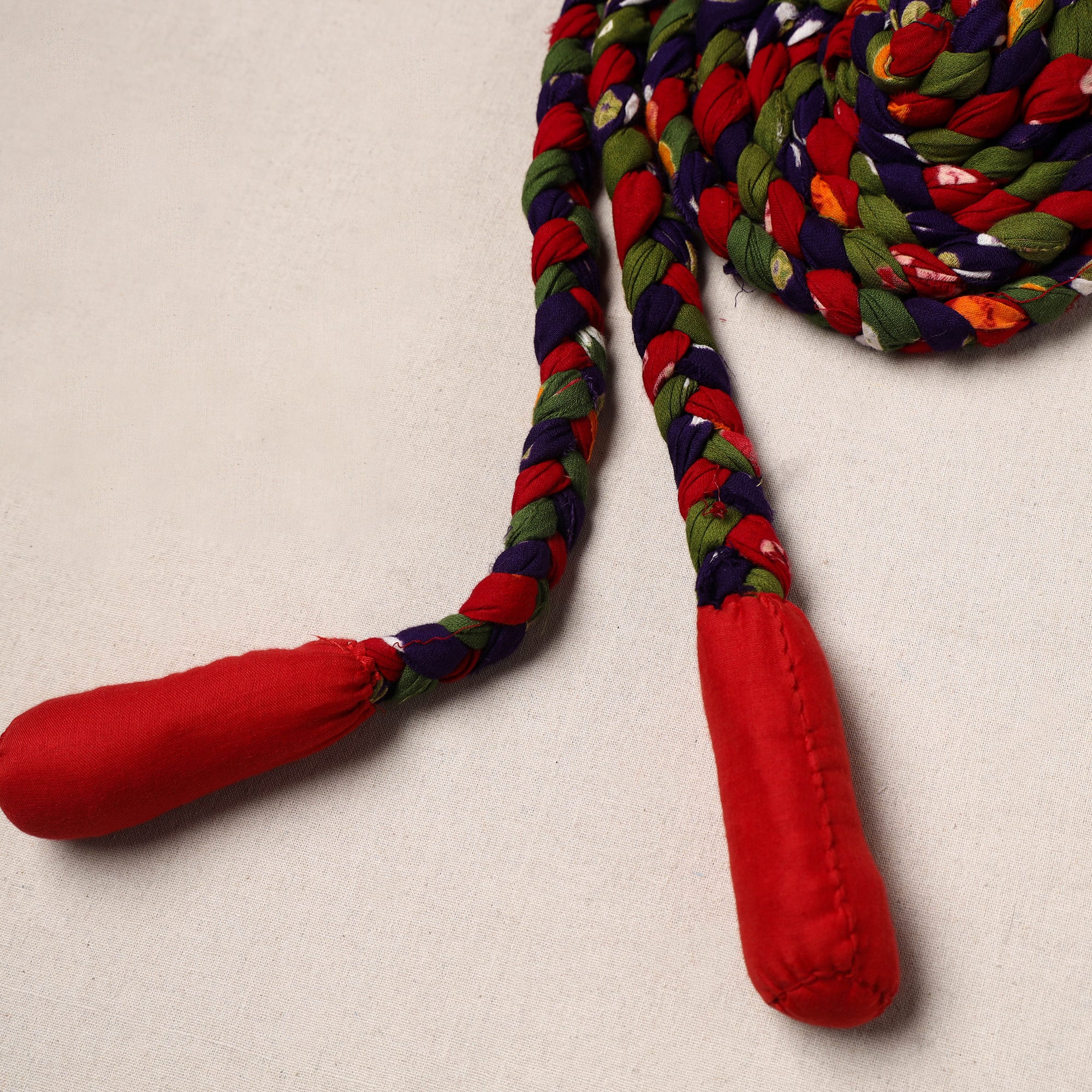 Achieve your fitness goals while going green with our handmade upcycled fabric skipping rope. It is a healthy exercise and specially good for heart and body coordination. Its bold colors make your exercise fun. It has fabric made anti-slip handles which makes it easy to use. Build stamina, lose weight and suitable for many body fitness