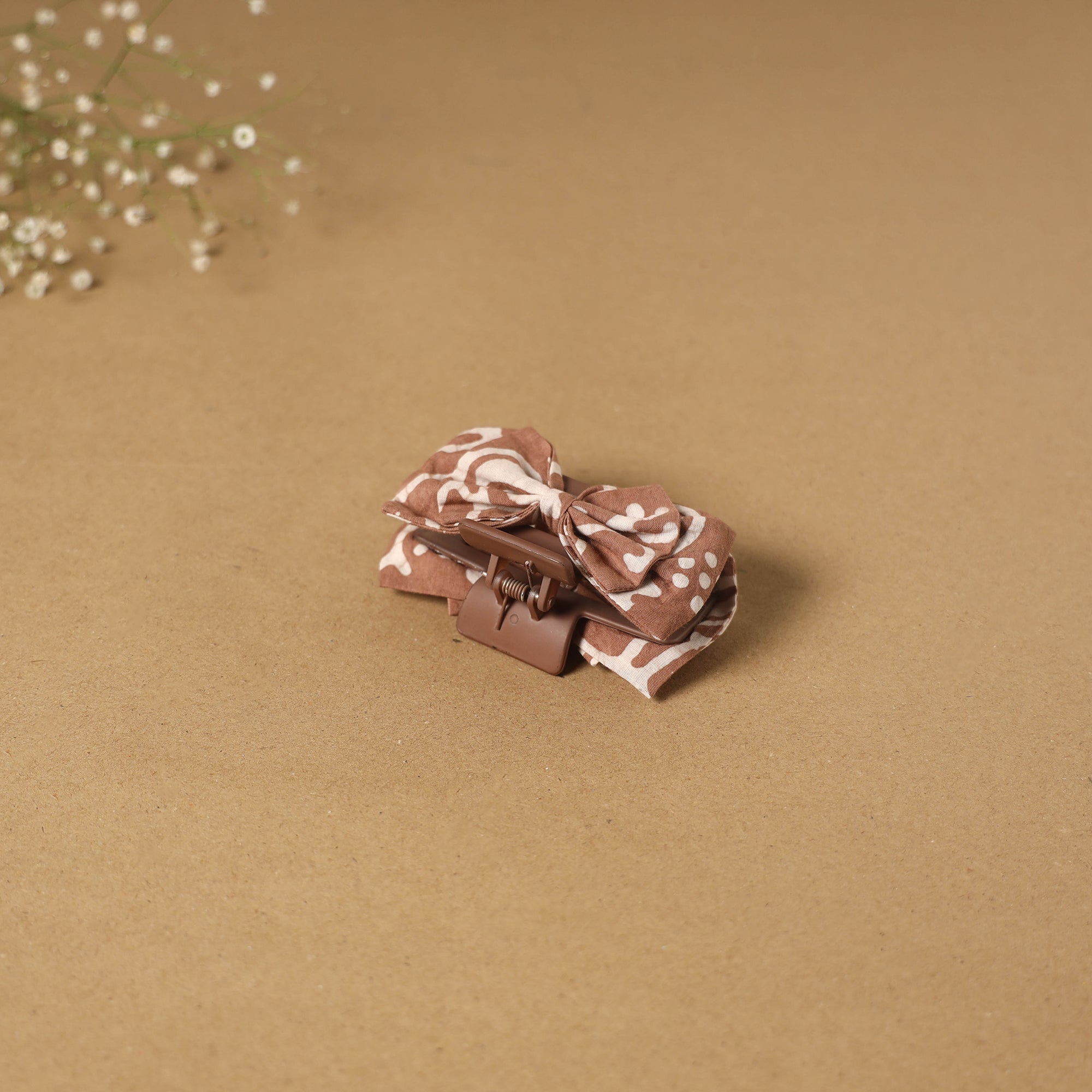 Women’s brown bow hair claw clip is a perfect accessory to style and keep your hair in place. Made with a plastic base and finished with an artisan-made fabric bow, it is suitable for everyday styling or simple outings.