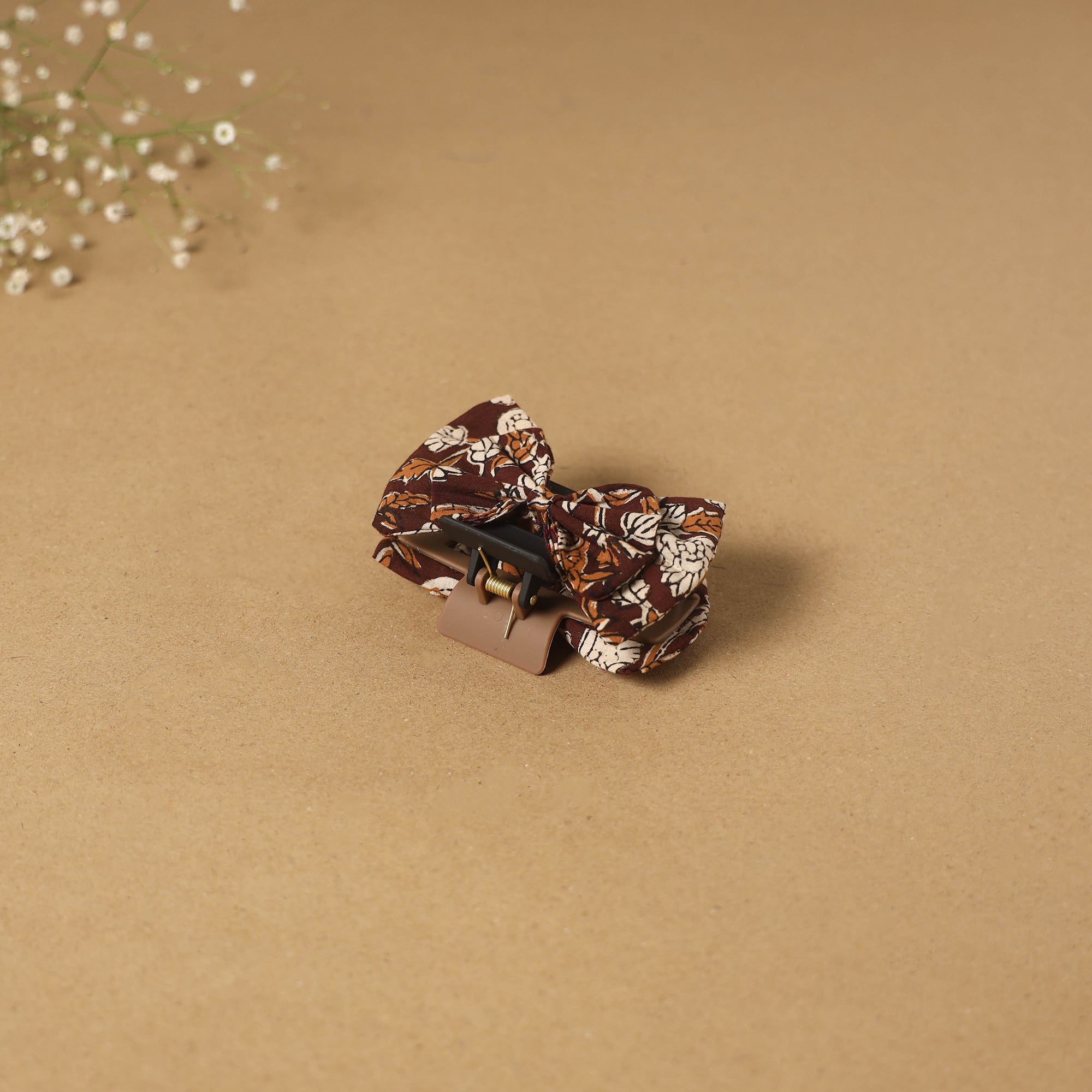 Women’s brown bow hair claw clip is a perfect accessory to style and keep your hair in place. Made with a plastic base and finished with an artisan-made fabric bow, it is suitable for everyday styling or simple outings.