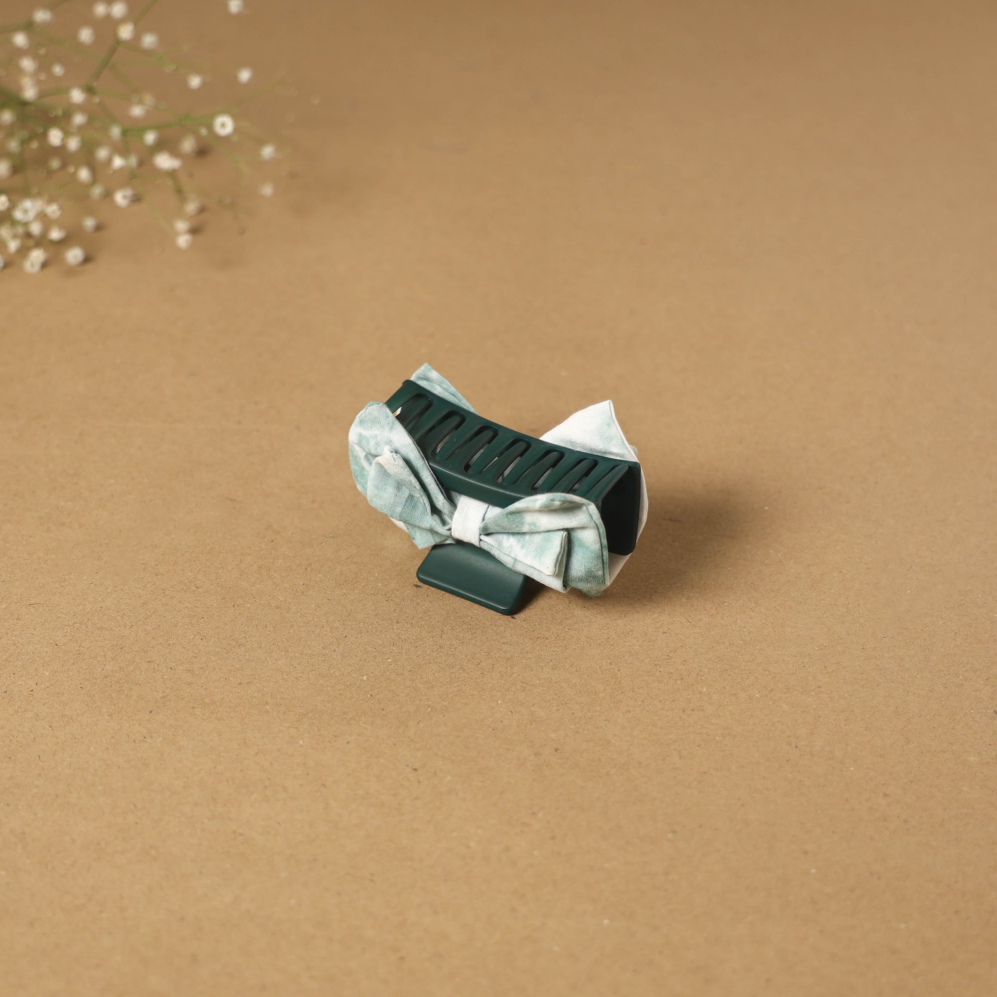 Women’s green bow hair claw clip is a perfect accessory to style and keep your hair in place. Made with a plastic base and finished with an artisan-made fabric bow, it is suitable for everyday styling or simple outings.