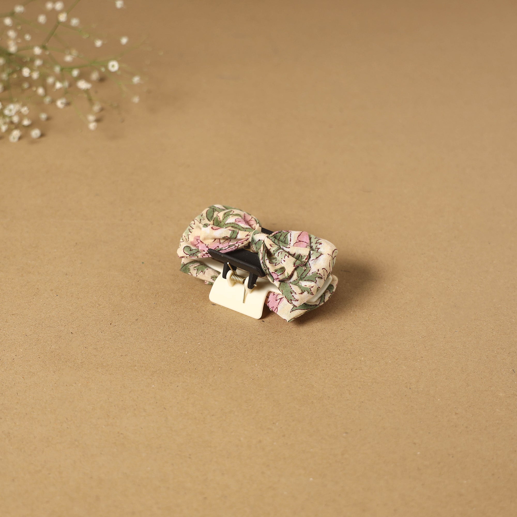 Women’s beige bow hair claw clip is a perfect accessory to style and keep your hair in place. Made with a plastic base and finished with an artisan-made fabric bow, it is suitable for everyday styling or simple outings.
