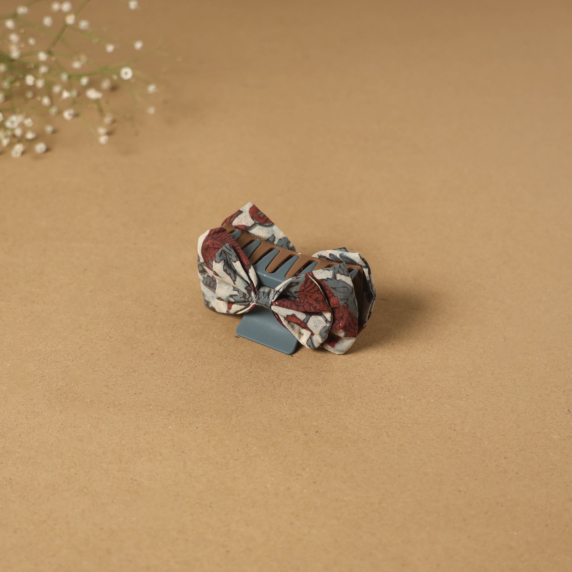 Women’s brown bow hair claw clip is a perfect accessory to style and keep your hair in place. Made with a plastic base and finished with an artisan-made fabric bow, it is suitable for everyday styling or simple outings.