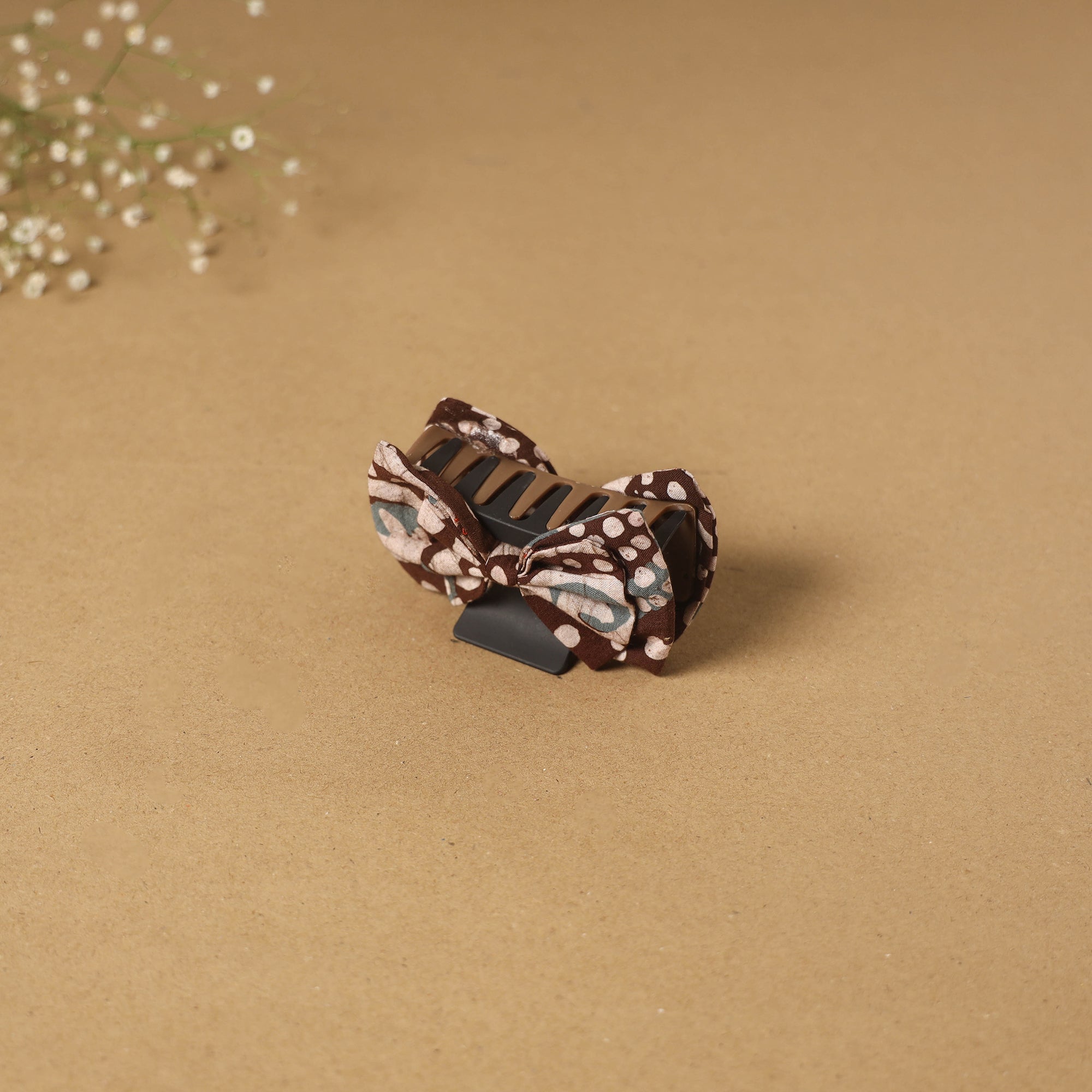 Women’s brown bow hair claw clip is a perfect accessory to style and keep your hair in place. Made with a plastic base and finished with an artisan-made fabric bow, it is suitable for everyday styling or simple outings.