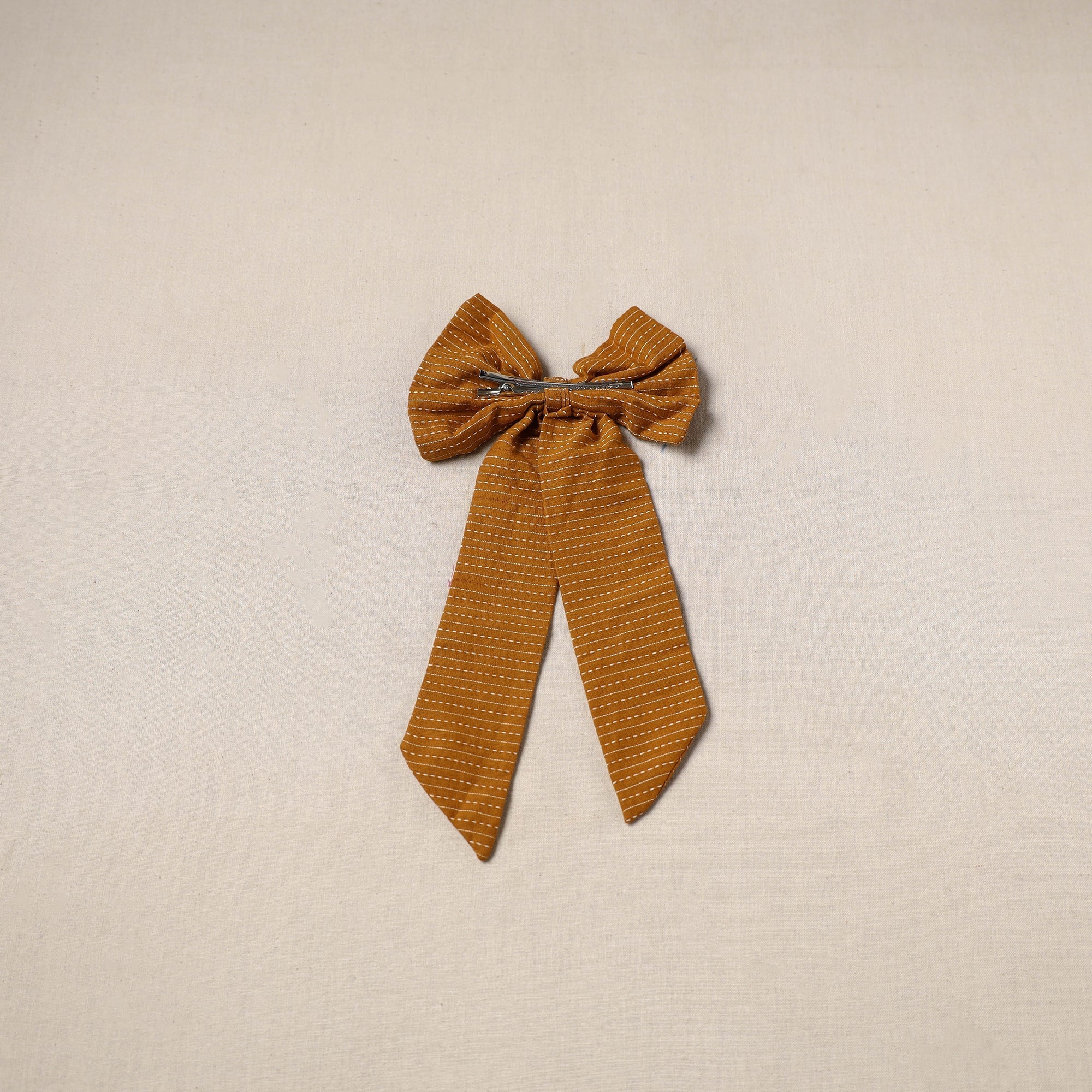Yellow Handmade women's bow hair clip adds a soft stylish touch to your everyday look. Crafted by skilled artisans it sits comfortably and stays secure through the day. A lovely pick for routine wear friendly meet-ups or simple celebrations it brings a gentle elegance that pairs well with both relaxed and dressed-up outfits.
