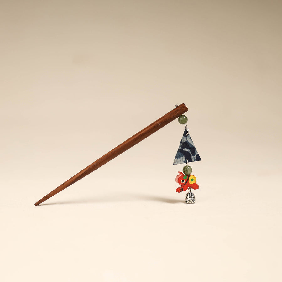 Handmade juda stick adds a graceful touch to your hairstyle. Made with a wooden base, it features intricate artisan-made details that may include fabart, beads work, german silver, hand-painted elephant or other decorative elements, reflecting the unique creativity of the maker.