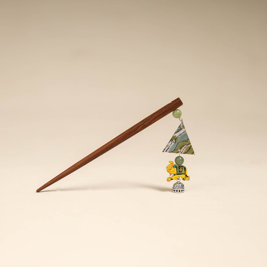 Handmade juda stick adds a graceful touch to your hairstyle. Made with a wooden base, it features intricate artisan-made details that may include fabart, beads work, german silver, hand-painted elephant or other decorative elements, reflecting the unique creativity of the maker.