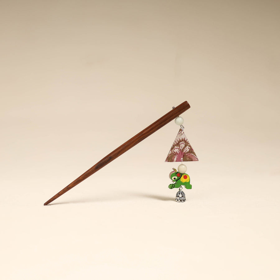 Handmade juda stick adds a graceful touch to your hairstyle. Made with a wooden base, it features intricate artisan-made details that may include fabart, beads work, german silver, hand-painted elephant or other decorative elements, reflecting the unique creativity of the maker.
