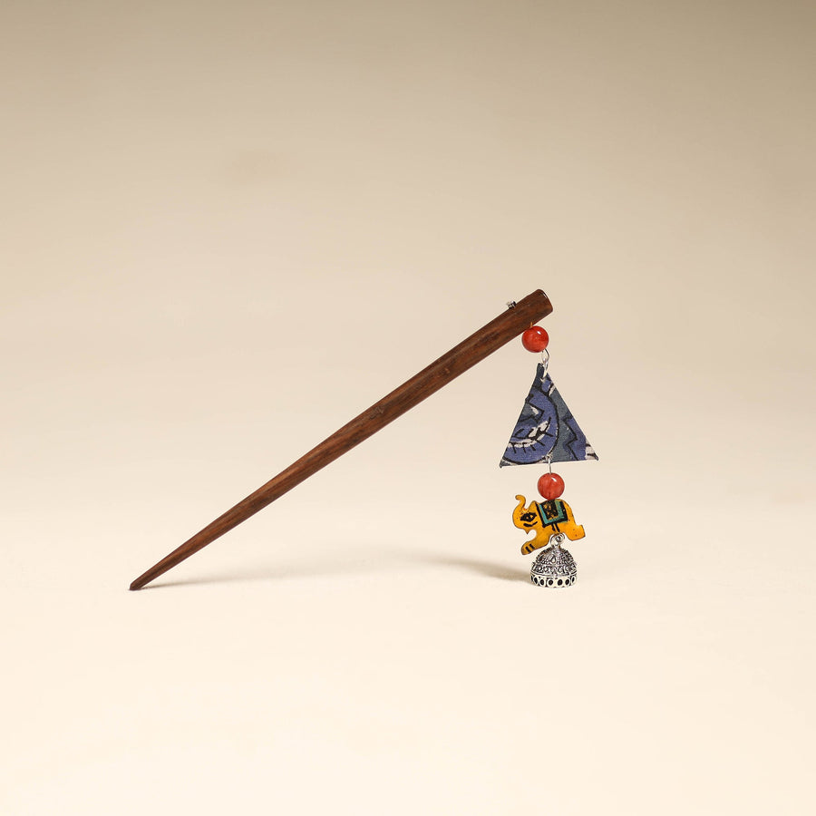 Handmade juda stick adds a graceful touch to your hairstyle. Made with a wooden base, it features intricate artisan-made details that may include fabart, beads work, german silver, hand-painted elephant or other decorative elements, reflecting the unique creativity of the maker.