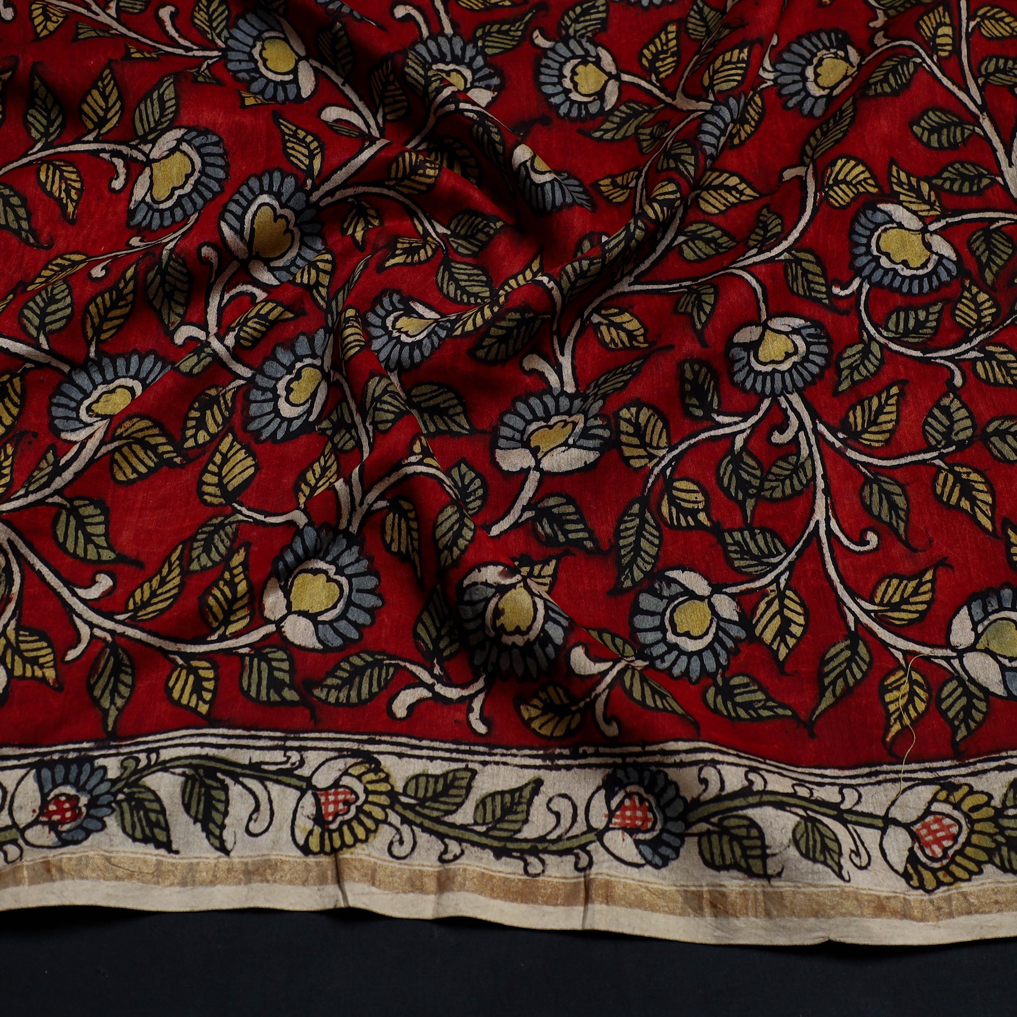Embrace timeless artistry with our red handpainted chanderi silk "Bamboo Kalam’s" kalamkari blouse piece. Crafted from handloom chanderi silk cotton, this blouse piece showcases intricate free-hand drawings and natural colors, reflecting centuries-old kalamkari craftsmanship. Perfect for both special occasions and everyday elegance, it offers a unique blend of comfort and style.