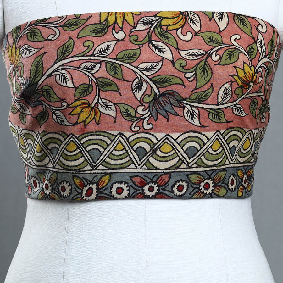Embrace timeless artistry with our peach handpainted cotton "Bamboo Kalam’s" kalamkari blouse piece. Crafted from handloom cotton, this blouse piece showcases intricate free-hand drawings and natural colors, reflecting centuries-old Kalamkari craftsmanship. Perfect for both special occasions and everyday elegance, it offers a unique blend of comfort and style.