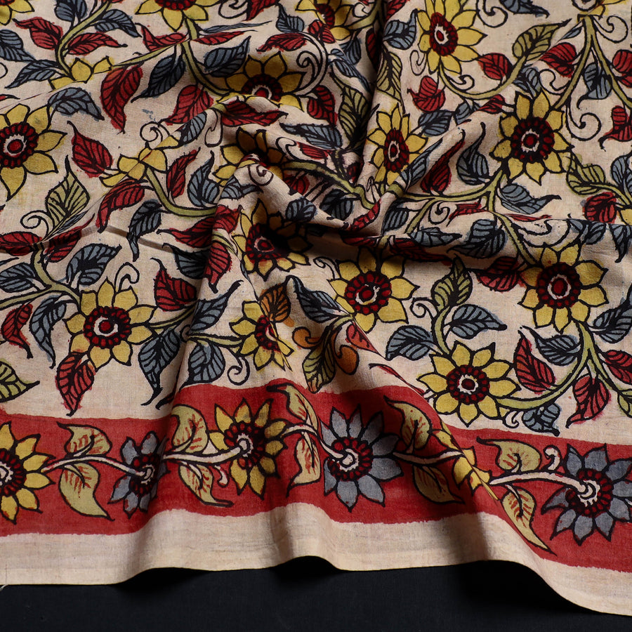 Red - Desi Tussar Silk Handpainted Srikalahasti Pen Kalamkari Fabric in Natural Dyed Pure Handloom 23