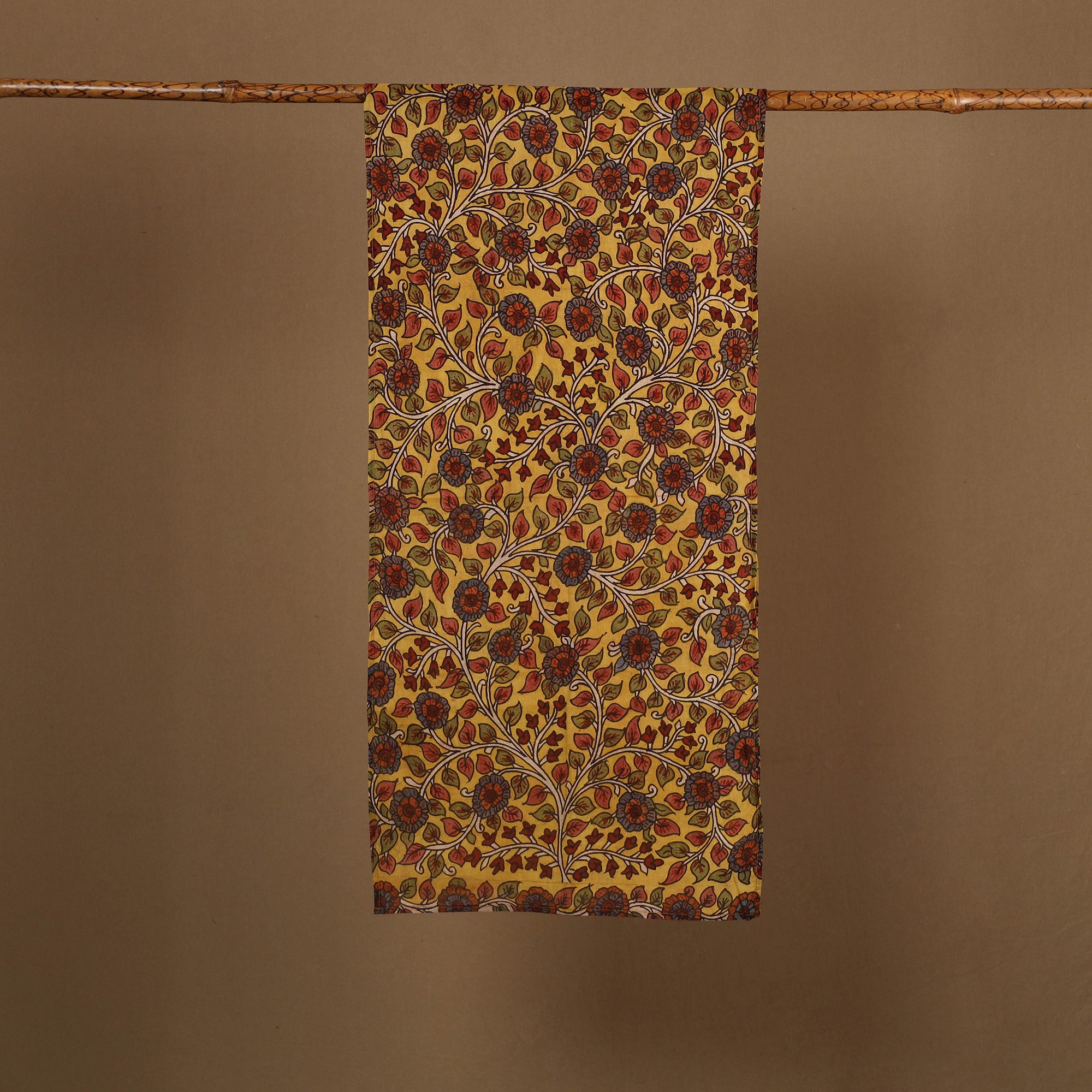 Add a touch of tradition to your wardrobe with this yellow hand-painted "Bamboo Kalam’s" kalamkari stole. Crafted from cotton, it showcases intricate freehand drawings and is dyed using natural colours hallmarks of the centuries old Kalamkari art form from India. Whether you're dressing up for a special occasion or enhancing your everyday style, this stole perfectly combines comfort with timeless artistic elegance.