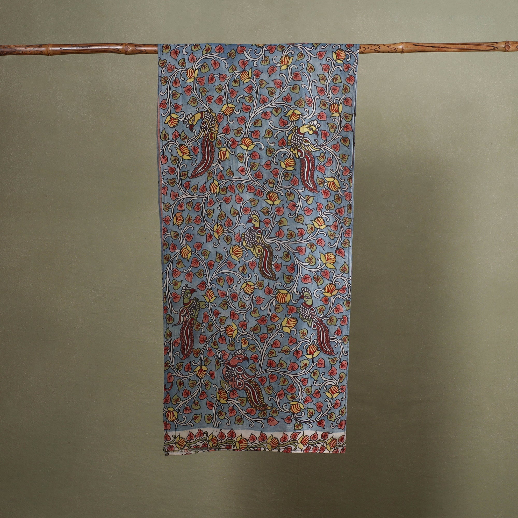 This blue cotton hand-painted 'Bamboo Kalam' Kalamkari stole adds a distinctive charm to your wardrobe. Featuring freehand drawings and dyed using natural colours, it celebrates the artistry of kalamkari, a craft rooted in Andhra Pradesh. Each piece is created by skilled artisans and reflects the richness of Indian textile heritage. Ideal for festive occasions or everyday styling, it pairs beautifully with a kurta or dress to bring a touch of handcrafted elegance.