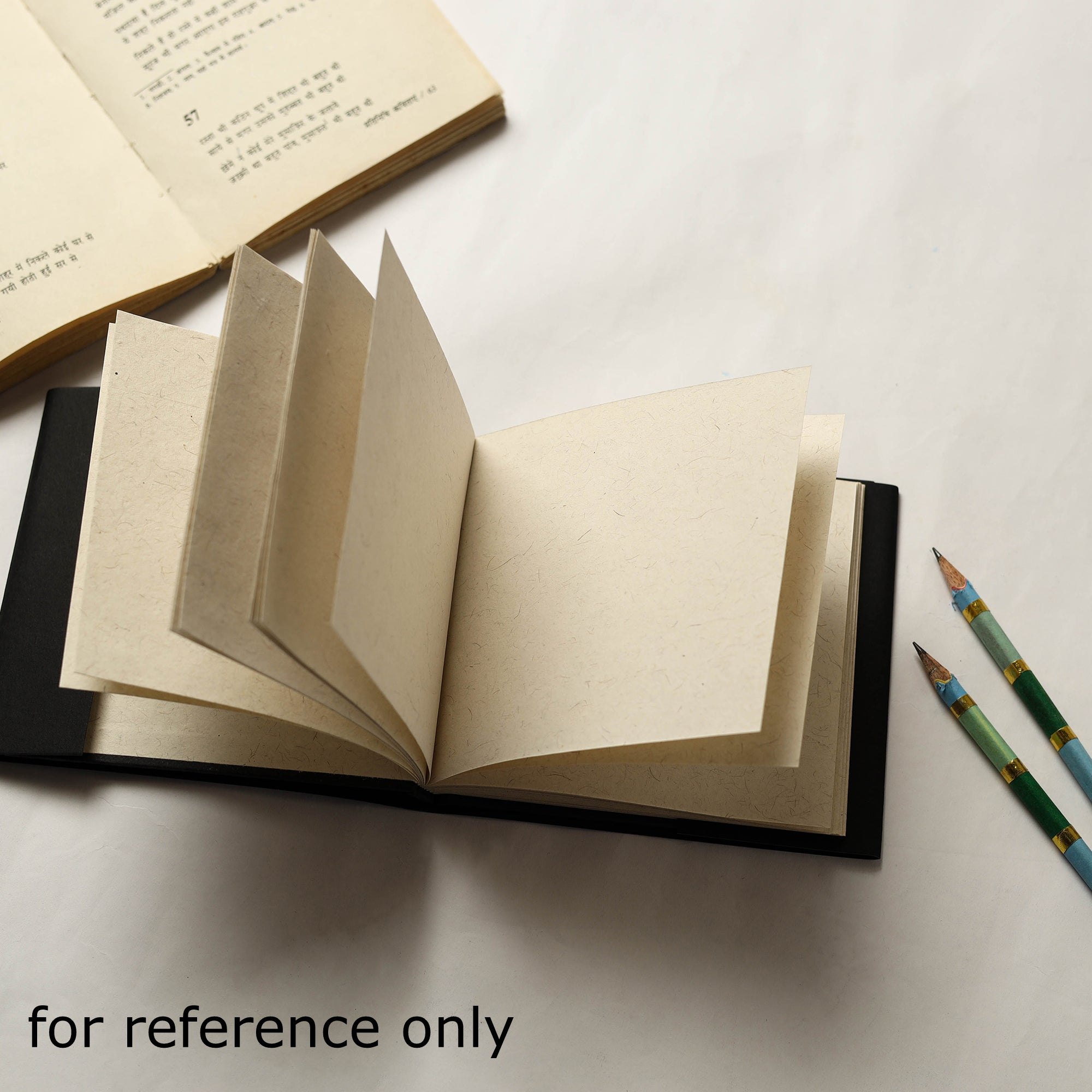 | Size | Length - 13 cm, Width - 13 cm. Has 100 handmade unruled pages inside. |