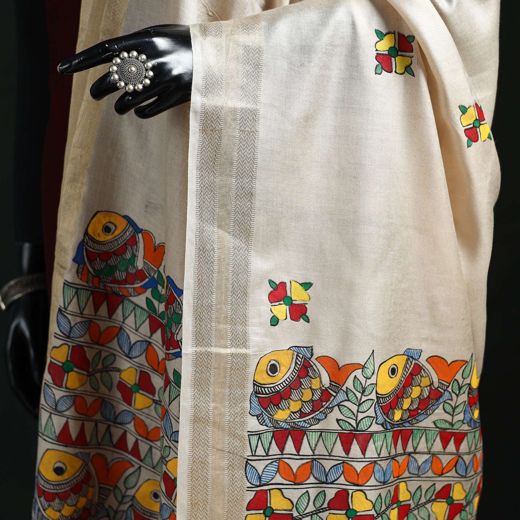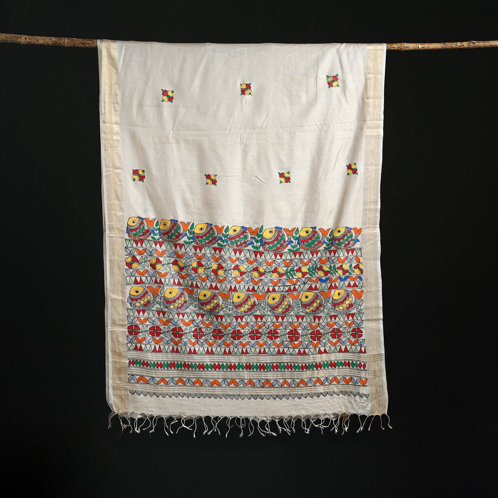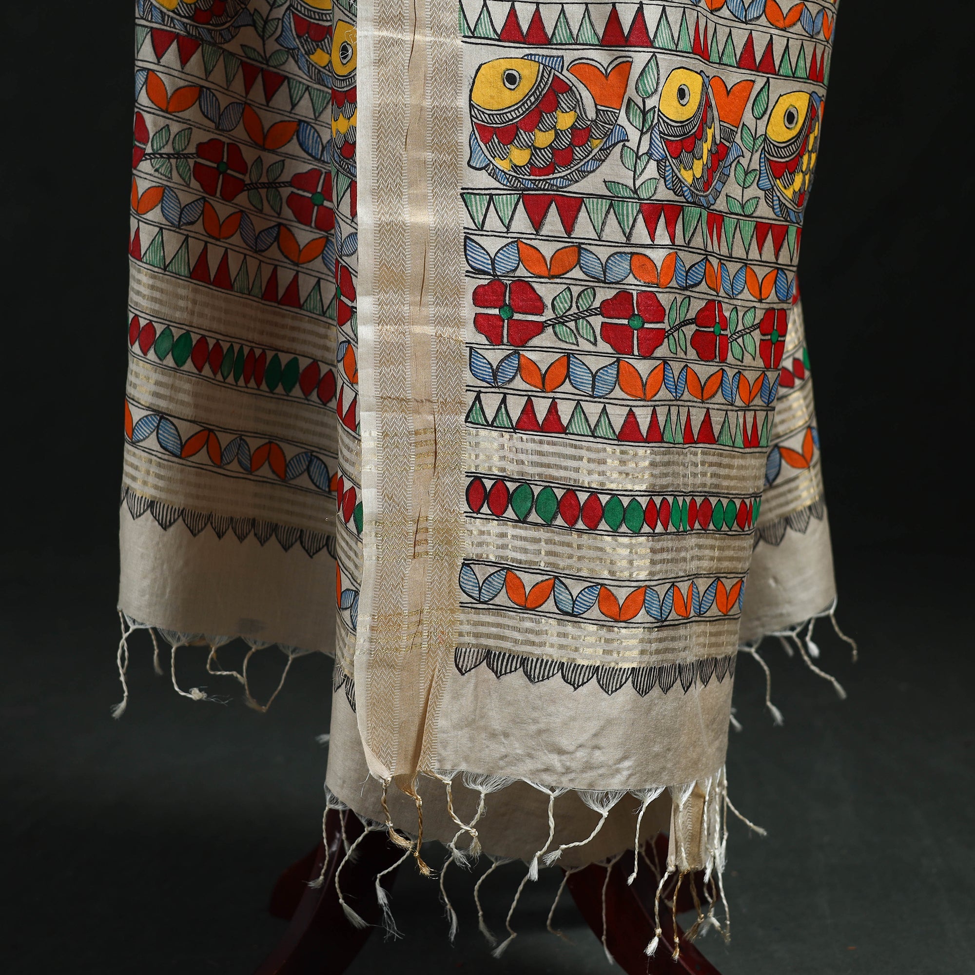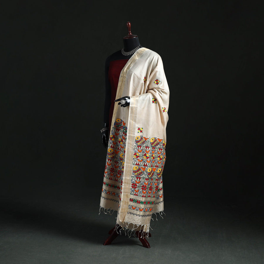 Handpainted Madhubani Handloom Tussar Cotton Dupatta 16