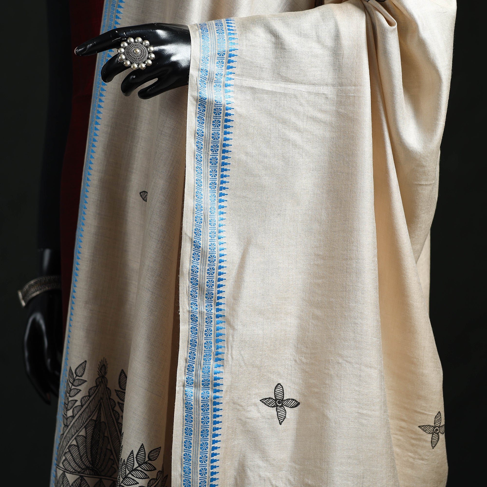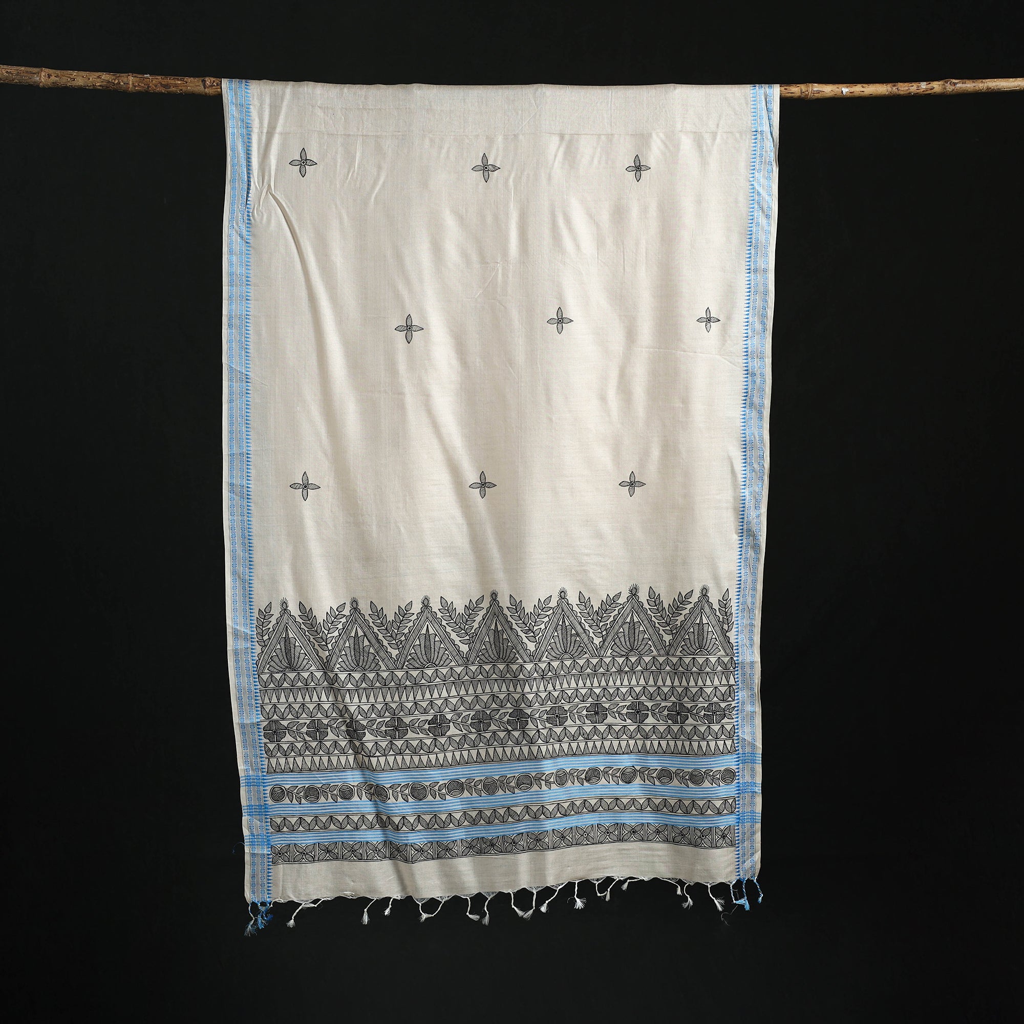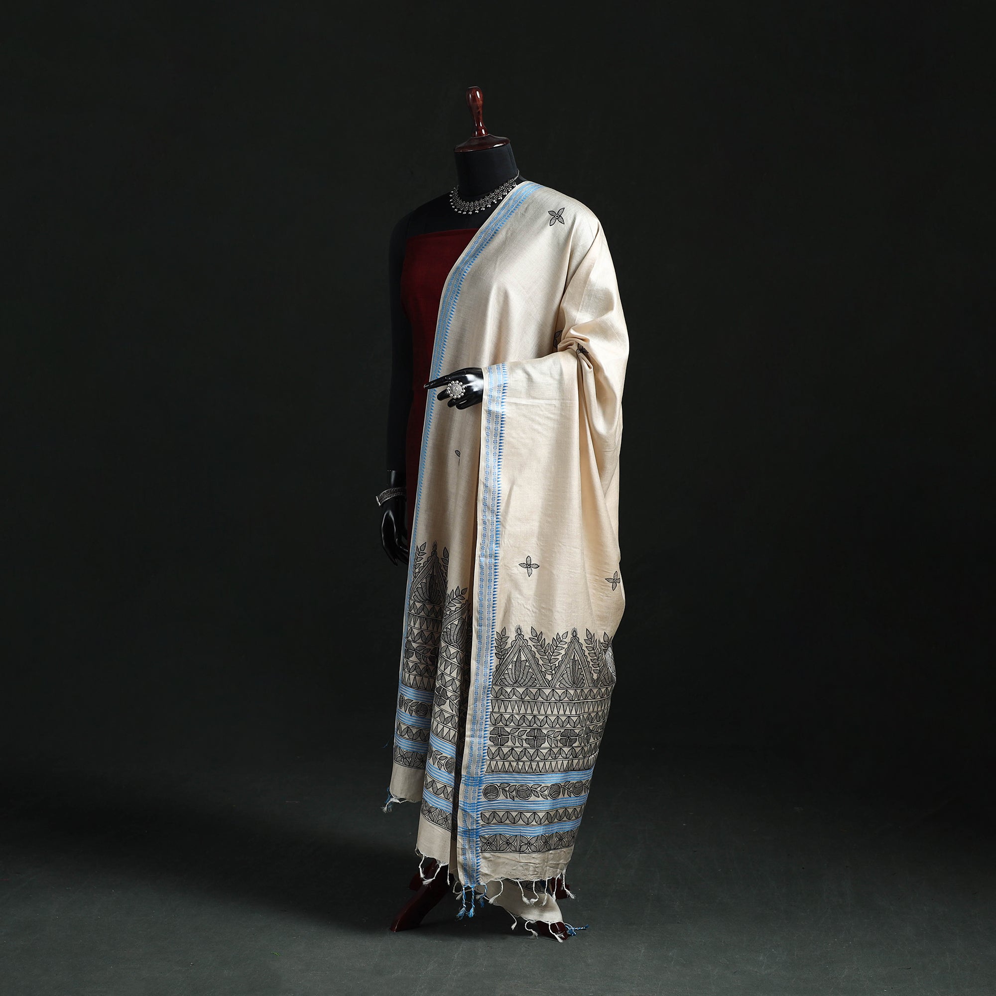 Handpainted Madhubani Handloom Tussar Cotton Dupatta 17